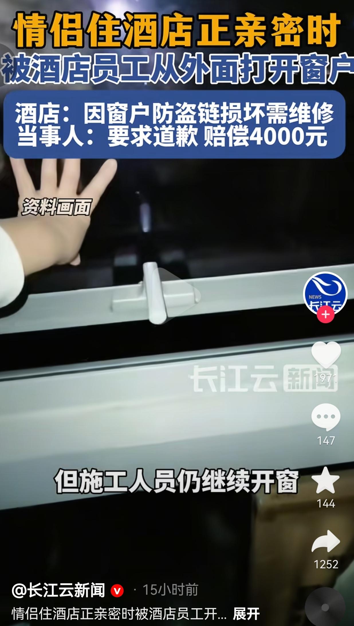 这事儿真的能把人肺气炸!3月15号早上8点半,南京的钱先生和对象,在入住的酒店负一层房间里温存,正是最私密的时刻,窗外突然传来刺耳的电钻声,还没等俩人反应过来,一只手就从外面硬生生把窗户给推开了! 钱先生当时吓得魂都飞了,扯着嗓子连喊两声“别开!有人!”,声音都抖了,可外面施工的人就跟没听见一样,不管不顾地把窗户扒开大半,情侣俩猝不及防,就这么被看了个精光,尴尬又恐惧,当场愣在原地半天缓不过神。 事后才搞清楚,是酒店要修窗户防盗链,可从头到尾,没提前给房间打电话通知,没敲门核实有没有客人,甚至连前台都没查入住记录,直接就让施工人员跑到窗外硬开窗,完全把客人的隐私当成了空气! 钱先生又羞又怒,找酒店讨要说法,要求书面道歉+4000元精神赔偿,这本是最基本的维权诉求。 可酒店的态度简直让人寒心!轻飘飘甩下一句“就是修防盗链,不小心闯进去的”,想随便糊弄过去,不仅坚决拒绝书面道歉,反倒逼着钱先生签放弃诉讼的协议,想彻底堵住他的嘴! 更讽刺的是,酒店最后只轻描淡写说“已按规处理涉事员工”,对钱先生遭受的精神伤害、隐私侵犯,连一句真心实意的愧疚道歉都没有,全程毫无担当! 网友看到后评论说:“这跟破门而入耍流氓有啥区别?住酒店花的就是私密空间的钱,不是买个随时被人闯的笼子!换我我得跟酒店死磕到底,绝不妥协!” 也有的网友说:“修东西就不能提前说?就不能等客人退房?连房间有没有人都不查就硬开窗,摆明了不把客人当人,这哪是维修,就是故意侵犯隐私!” 还有的网友说:“酒店还敢逼签放弃诉讼?脸都不要了!做错事不想着好好弥补,反倒想着怎么堵嘴,吃相太难看了!处理个员工就想完事?做梦!” 也有的网友说:“合着酒店眼里,客人的尊严和隐私,还不如一根破防盗链值钱?这种漠视客人的酒店,就该彻底曝光,让大家都避雷!” 我真的越看越气!😡大家出门住酒店,花了钱,买的就是安全、私密、被尊重,这是酒店最基本的服务底线,可这家酒店,直接把这条底线踩得稀碎! 什么叫“修防盗链所以不小心”?维修就能不通知客人?维修就能无视客人的大声制止?维修就能连最基本的客人核实都不做? 这根本不是工作失误,是酒店从管理层到员工,从根上就没把客人当人看,在他们眼里,客人只是来消费的工具人,隐私和尊严根本不值一提! 更让人恶心的是,出了这么恶劣的事,酒店不想着诚恳道歉、弥补伤害,反倒想着逼签协议、推卸责任,拿处理员工当挡箭牌,把自己摘得一干二净,这种敷衍又傲慢的态度,比私自开窗本身更让人寒心! 我们住酒店,不管是情侣约会、出差还是旅行,都是把酒店当成临时的家,谁能想到,这个“家”一点安全感都没有,窗户能被人随便从外面推开,最私密的时刻能被陌生人随意闯入?换作任何一个人,遇到这种事,都会崩溃、委屈、无助! 最后我想说:这件事,彻底戳破了一些酒店行业的遮羞布:在利益和敷衍面前,客人的隐私与尊严,竟然变得如此廉价。 钱先生没有接受酒店的霸王条款,没有忍气吞声,我真的要给他竖大拇指!这不是4000块钱的事,是普通人维护自己基本权益的骨气,是绝不向无良商家妥协的态度! 酒店卖的从来不是一间冰冷的房间,而是一份能让人安心的保障,连客人的隐私都保护不了,连基本的歉意都不肯给,又有什么资格做酒店生意? 别让“维修”成为侵犯隐私的挡箭牌,住酒店的人,要的从来不是一间房,而是一份“我在里面,没人能随便闯进来”的安全感! 大家住酒店遇到过这种糟心事吗?碰到酒店漠视权益的情况,都是怎么维权的?评论区聊一聊,一起避雷无良商家,维护我们的合法权益!