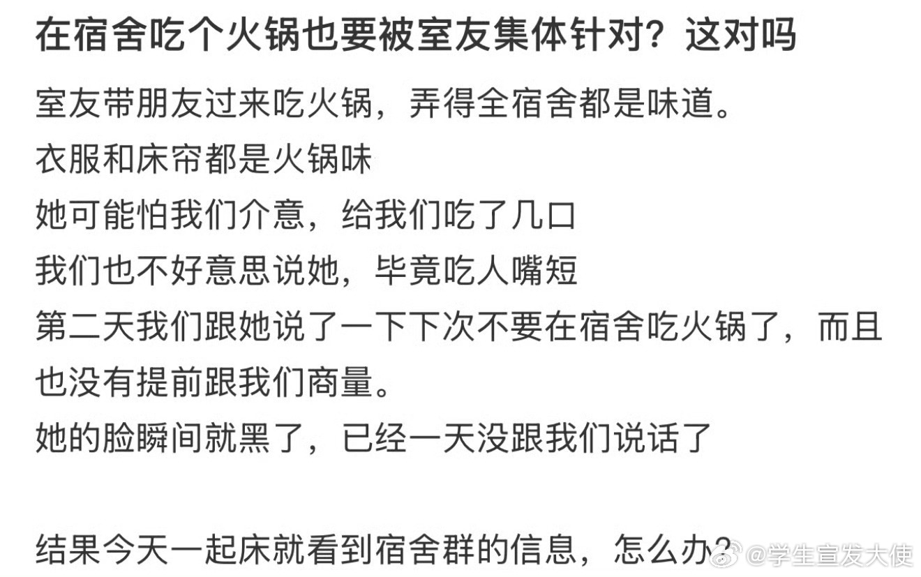 在宿舍里吃个火锅也要被室友集体针对吗?