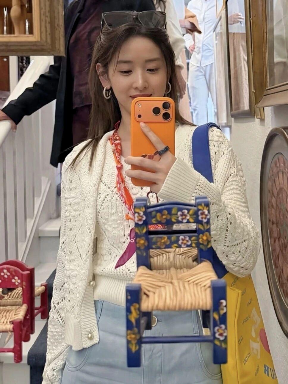 章泽天晒出对镜自拍,状态清新如少女。她漫步巴黎街头,一身低调优雅的“老钱风”穿搭