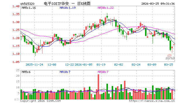 电子50ETF华安(515320)业绩比较基准为中证电子50指数收益率,管理人为华安基金管理有限公司,基金经理为顾昕,成立(2020-11-25)以来回报为14.37%,近一个月回报为-9.01%。