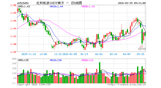 3月25日,红利低波50ETF南方(515450)开盘涨0.07%,报1.430元。红利低波50ETF南方(515450)重仓股方面,养元饮品开盘涨0.41%,陕西煤业跌2.11%,雅戈尔涨0.00%,中国外运涨0.18%,格力电器涨0.21%,洋河股份涨0.22%,双汇发展跌1.19%,南山铝业涨1.87%,中国神华跌2.06%,中国石化跌1.18%。