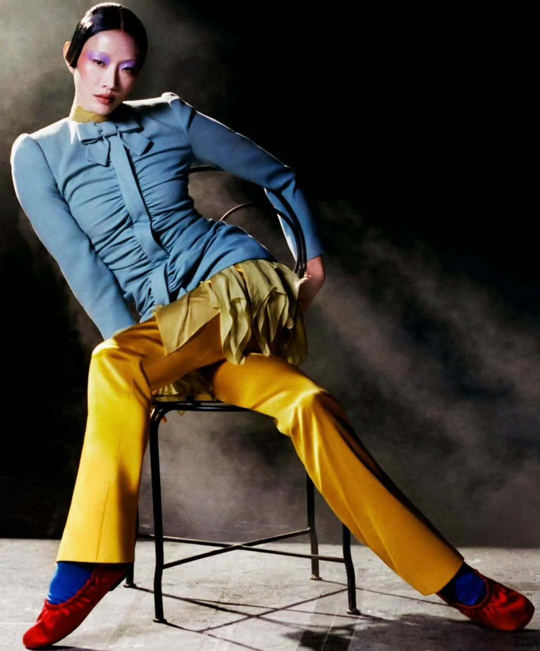 何穗x新视线MadameFigaro三月刊,迎来超模何穗登封,身穿L