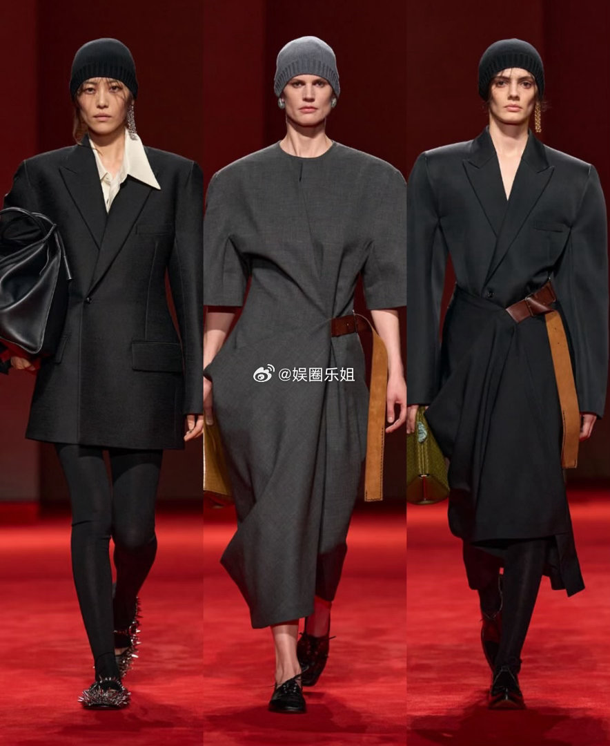 开场是干净利落的精裁,圆润肩线、雕塑感轮廓,搭配阔腿裤或裹身裙,腰带的灵感来自包袋工艺,克制却不拘谨。