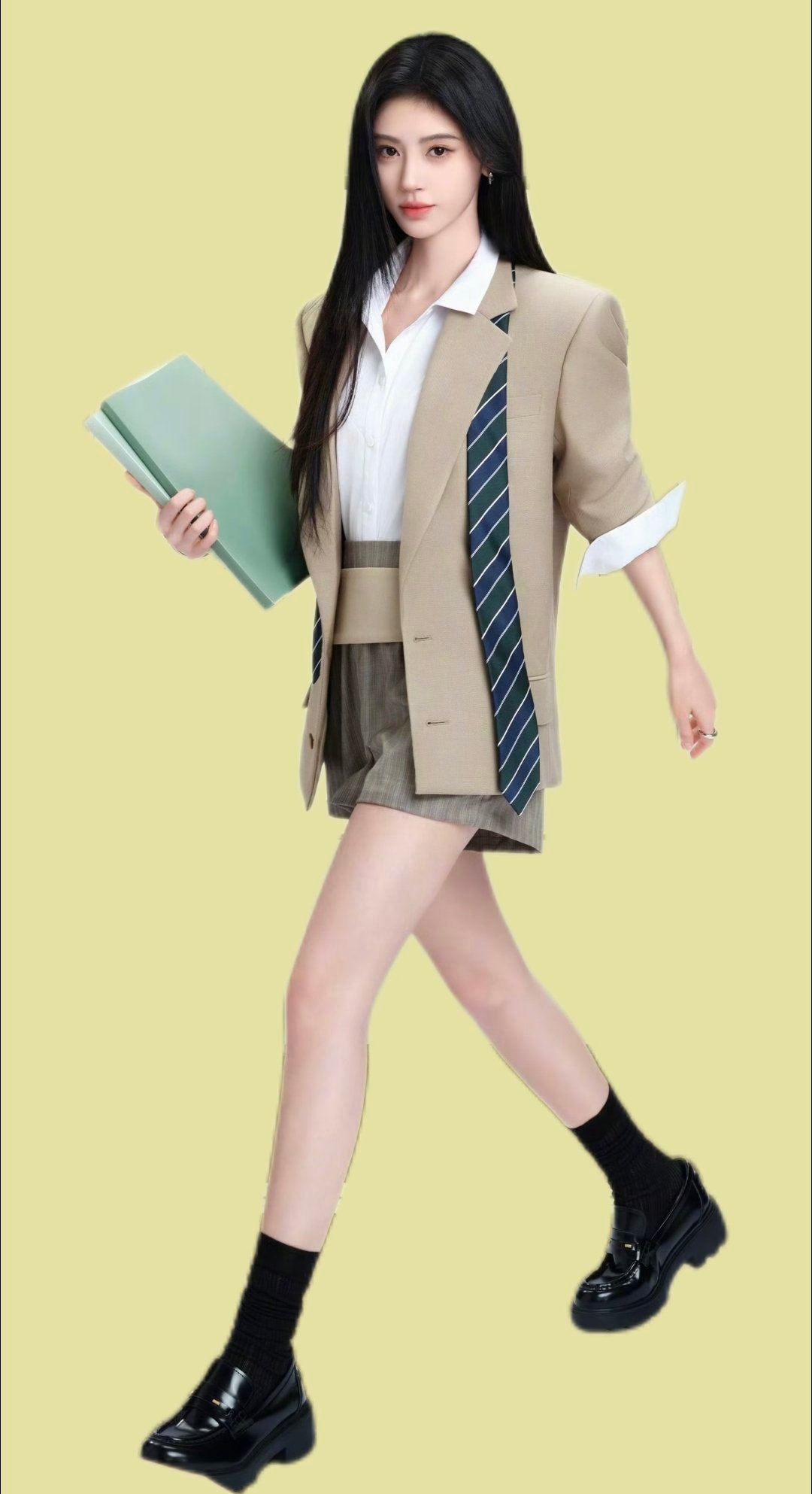 鞠婧祎西装短裤鞠婧祎OL风小鞠这套真的封神!卡其西装配格纹短裤,领带一系,甜酷学院风直接拉满。谁说上班只能沉闷?这套简直是职场穿搭教科书,鞠式美学太绝,一秒沦陷!