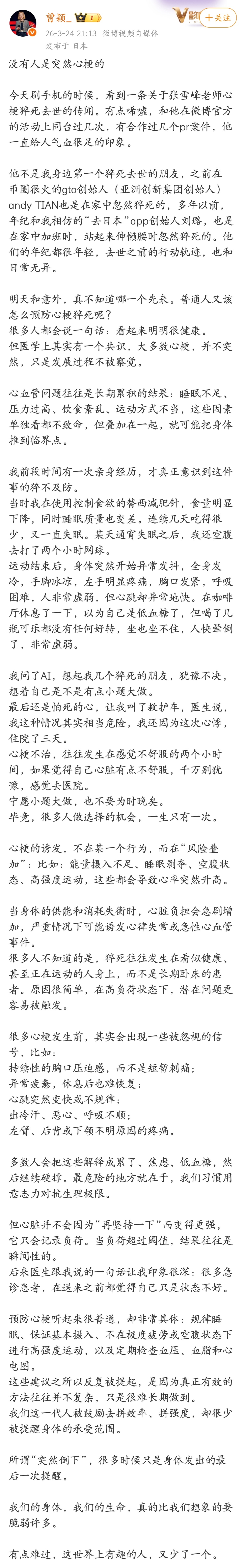 没有人是突然心梗的,张雪峰的离世,值得我们思考的还有很多。