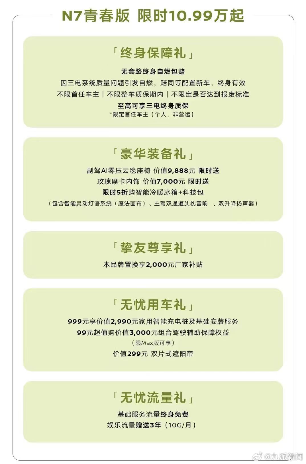 大人时代变了!当代年轻人的购车观,早已跳出“便宜就行”的粗放选择。我们追求的不是妥协,而是在合理预算内,守住对品质与体验的底线——不将就,是态度;刚刚好,是智慧。 东风日产N7青春版,正是为这代人量身打造的答案。10.99万元起,以亲民价格下探,直接将合资中高级纯电轿车带入10万级区间,打破“低价必减配”的固有印象。坚持核心配置全保留,三电系统、智能座舱、舒适体验全线在线,品质丝毫不缩水。B级车尺寸带来C级宽敞空间,AI零压云毯座椅、全域智能防晕车、高安全电池、8295P芯片与L2+级智驾,让实用与高级感同时在线。更以灵活选配理念,让科技包与智能冷暖冰箱限时5折可选,丰俭由人,拒绝无效消费。对年轻人而言,好车从不是越贵越好,而是预算可控、品质不妥协、选择更自由。N7青春版,以高价值重新定义10万级纯电轿车,正是年轻人刚刚好不将就之选。#年轻人的不将就N7青春版刚刚好#