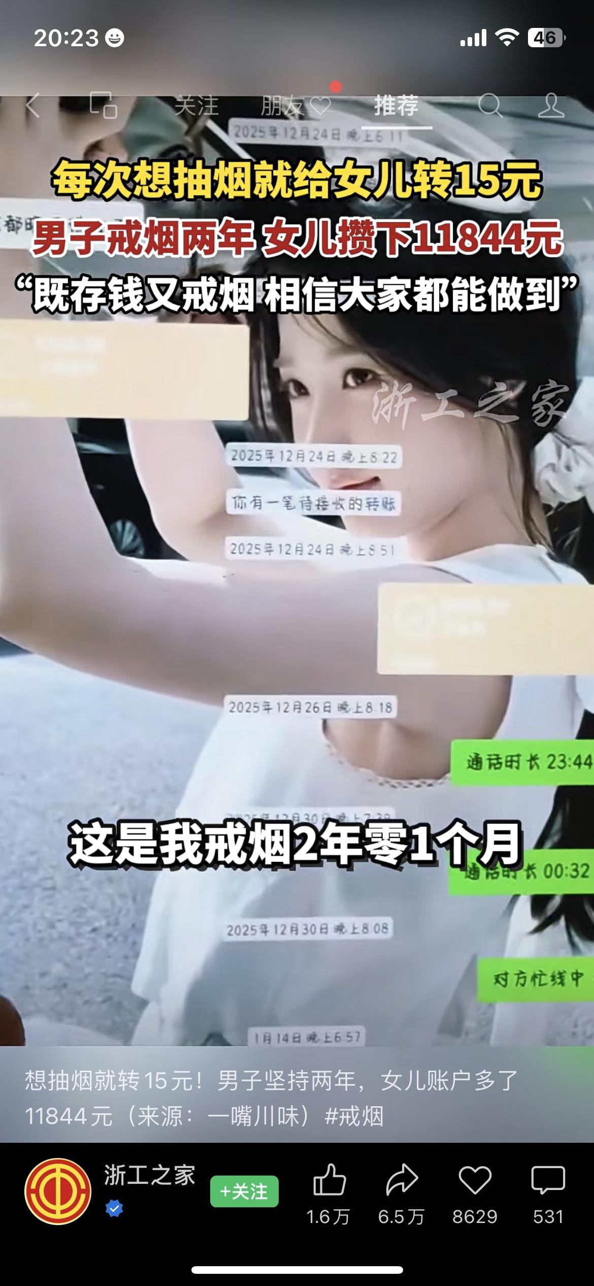 这位爸爸的自律太让人佩服!想抽烟就给女儿转15元,凭着这份对孩子的牵挂,硬生生坚持戒烟2年多,硬生生攒下11844元! 烟瘾彻底戒掉了,小金库也稳稳攒起来了,既守护了自己的健康,又给孩子存下了暖心积蓄,妥妥的双赢做法! 原来最好的自律,从来都源于心底舍不得的牵挂与责任,这才是普通人最接地气的幸福! 戒烟 存钱技巧 父爱 生活感悟