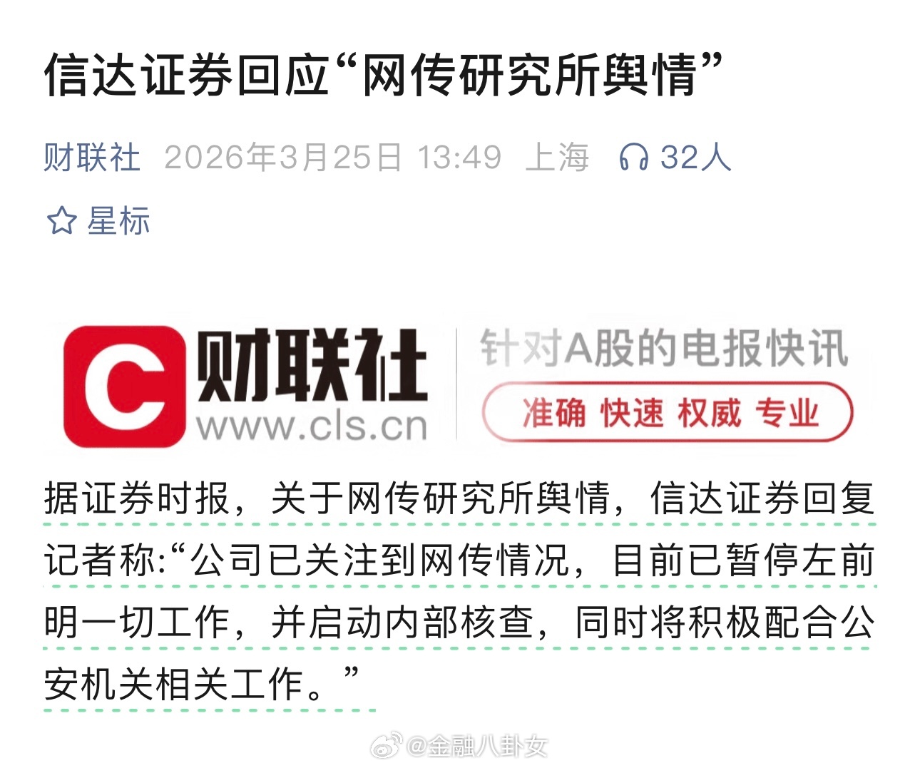 信达证券:“公司已关注到网传情况,目前已暂停左前明一切工作,并启动内部核查,同时