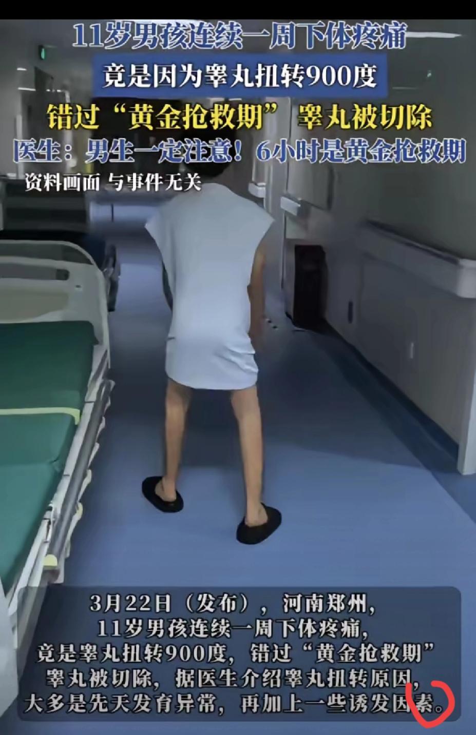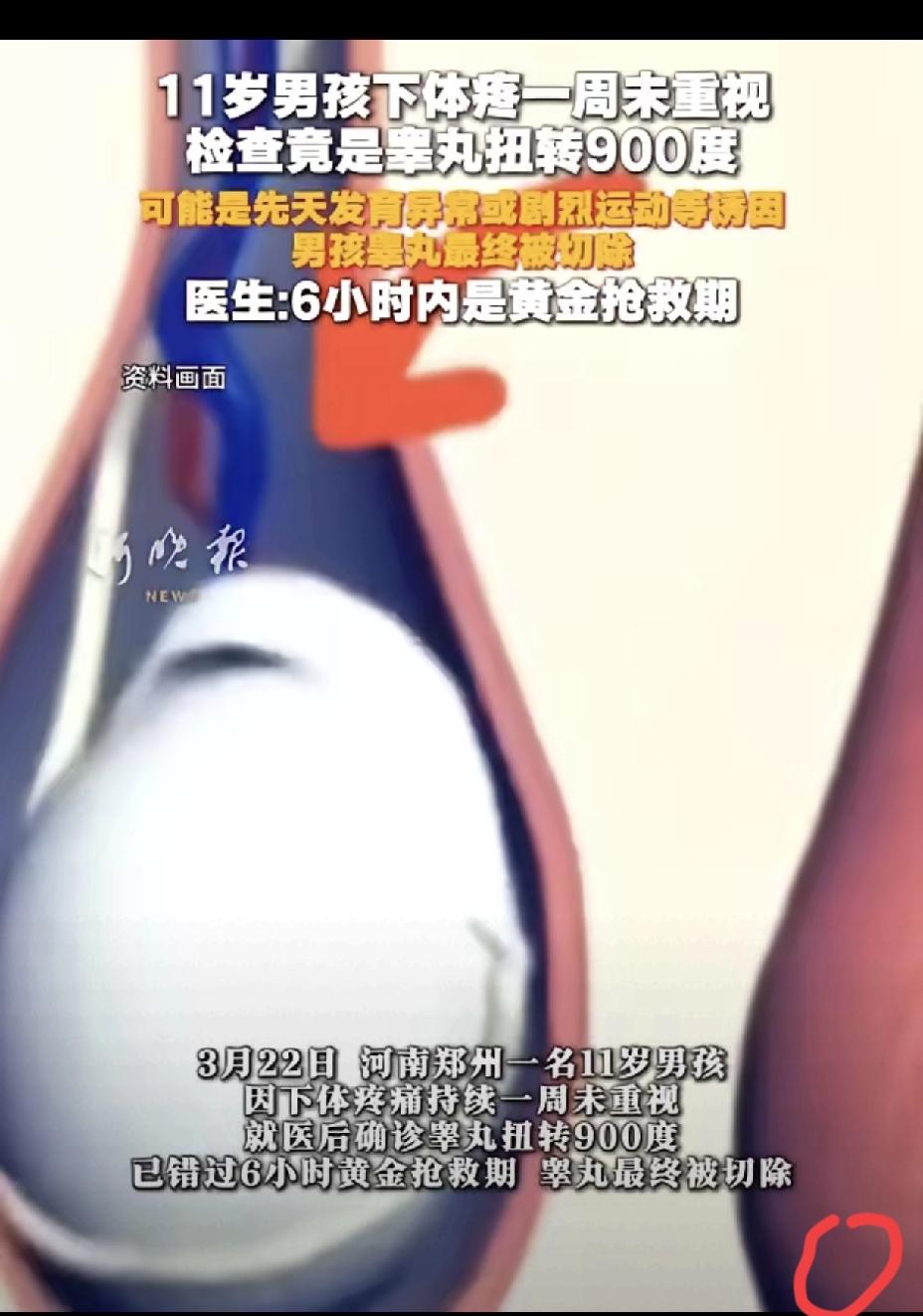 听着都揪心!11岁男孩因害羞隐瞒下体疼痛,最终睾丸扭转坏死被切除,这场悲剧根本不是意外,而是家庭教育的缺位。 青春期男孩本就敏感内敛,加上家长长期回避身体科普,孩子会下意识把隐私部位不适当成难以启齿的丑事。 睾丸扭转黄金救治时间仅有6小时,拖延一天就几乎失去挽回可能,孩子强忍七天,换来的是终身遗憾。 比起遮遮掩掩带来的羞耻感,健康才是最该被重视的底线。 家长要尽早打破沉默,告诉孩子身体没有不能说的疼痛,任何部位不舒服都要第一时间求助,别让沉默和偏见,毁掉孩子的未来。 你家孩子是否了解过这类身体急救知识?