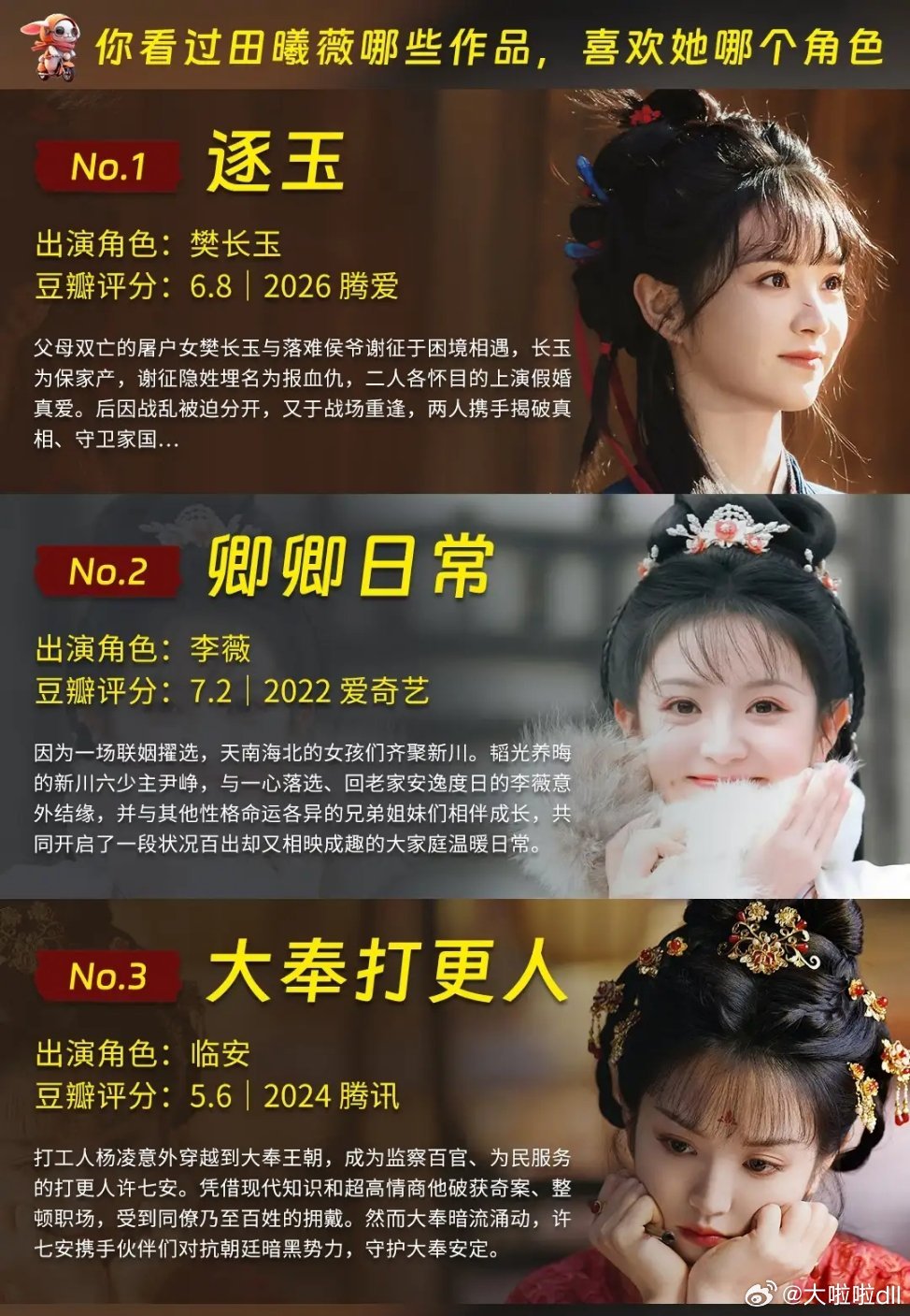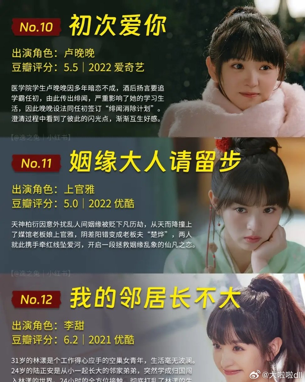 田曦薇最出圈的12部剧,你喜欢哪个角色?非常甜的北极巨兔小田的电视剧合集来啦,田曦薇出道8年,已播电视剧15部,待播2部,在拍1部,总体也算很高产~我根据剧集播出的综合效果,选出了比较好的12部,她的这些剧集角色,你喜欢谁?