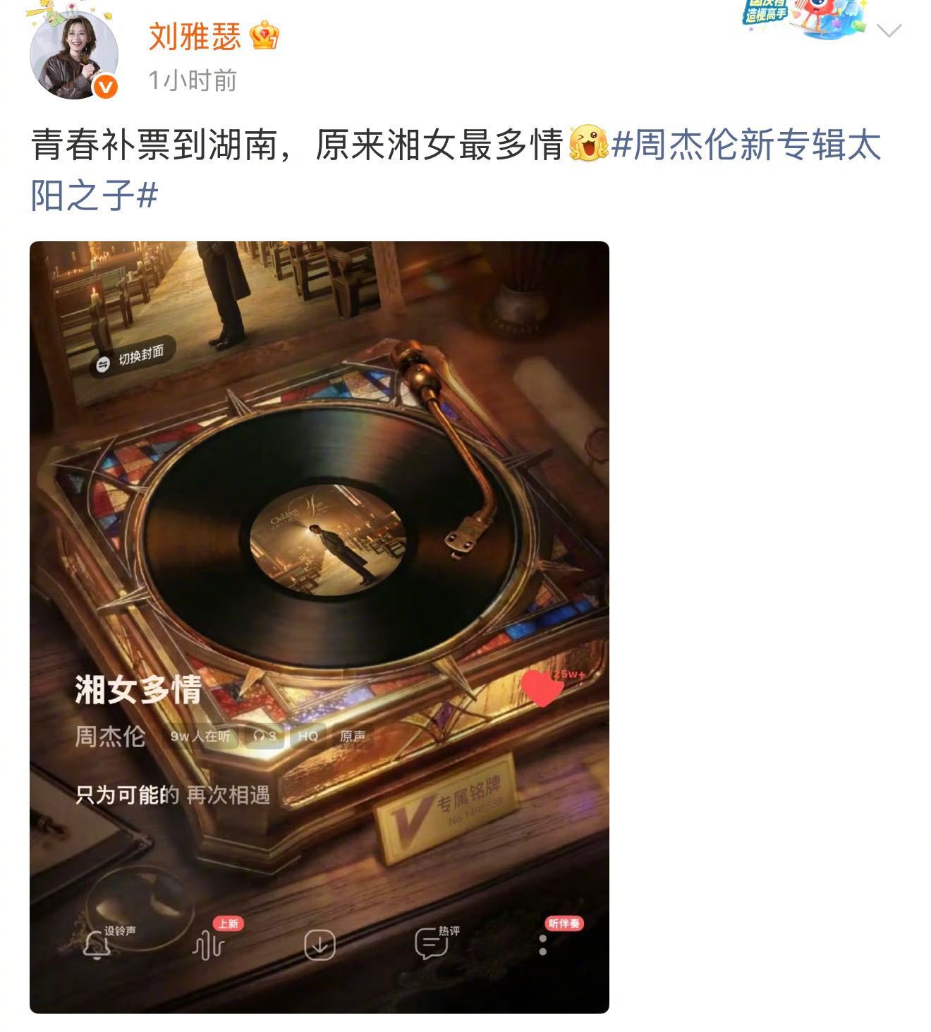 刘雅瑟为周杰伦新歌打call原来湘女最多情,们湘妹子也来为周杰伦新歌打Call啦