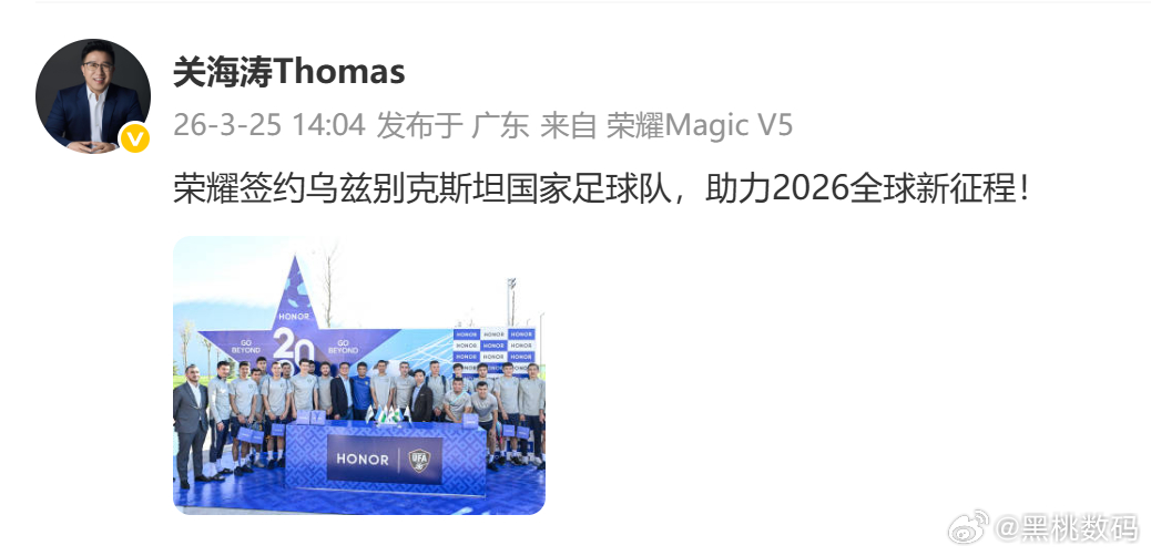主要也是乌兹别克斯坦年轻消费群体增长迅速,这次合作既能深化荣耀在当地年轻群体中的品牌影响力、巩固市场领先地位,也将以体育为纽带推动国际交流,为品牌全球化发展注入新动能。