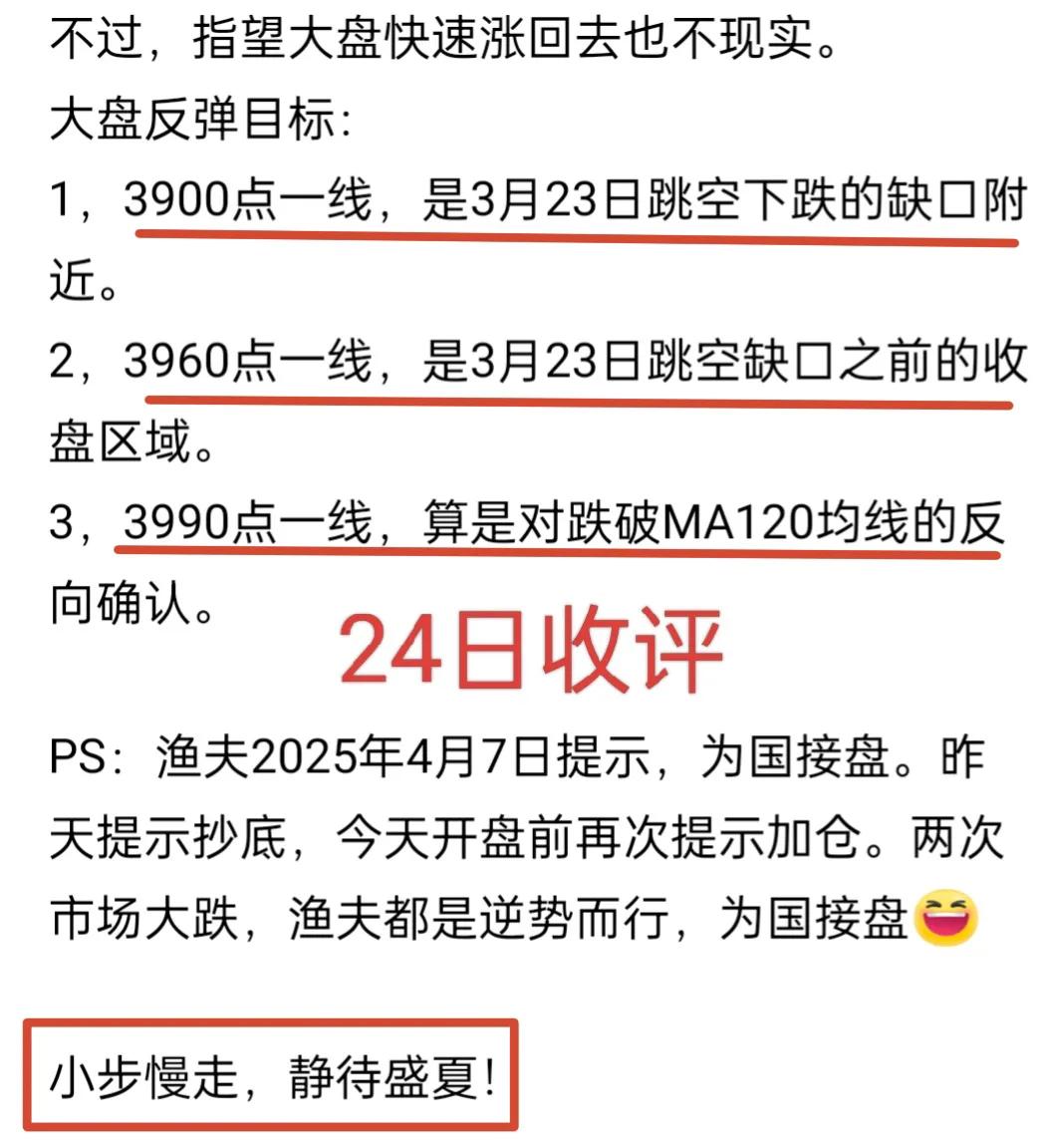 A股:三个交易日内,大盘自低位上涨了140点,多头表现不够坚定,这意味着市场亟待洗牌。 渔夫3月16日曾经讲过,上山比下山艰难(结果大盘暴跌了300点)。 大盘上涨时,既要化解获利盘,又要应对套牢盘,而下跌只需拆台就行。 上方大量套牢盘眼巴巴盼着解套,主力与其急于求成,不如慢慢磨,让上方筹码和跟风抄底的筹码都流出一些。 大盘周一以3904点低开,最高涨至3906点,留下一个约50点的缺口。 今日盘中高点达3933点,回补了部分缺口。 昨日收盘后,渔夫划定了三个反弹目标,分别是3900点附近、3960点附近以及3990点附近。 今日大盘达成首个目标(收盘3931点),接下来便是冲击第二个目标。 大盘究竟是先回踩再上攻,还是先上攻再回踩呢? 今日沪深两市成交金额达2.18万亿,较昨日的2.08万亿增加了1000亿。 这1000亿里,既有低位被吓跑后回补的资金,也有看好后市的资金。 从尾盘成交量来看,短期大盘仍有上行机会。 从中线角度而言,大盘短期波动可忽略不计。 从短线角度来说,今天逢高应该减仓。 周一抄底,周二加仓,今天逢高减仓,不香吗? 个人观点,仅供交流,不构成投资建议!理财有风险,投资需谨慎! 大盘分析行情