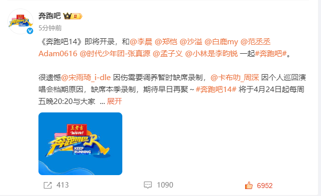 宋雨琦周深暂离奔跑吧 短暂分别只为更好相遇,周深宋雨琦暂离跑男,本期虽有遗憾,但静待两人满血归来续写欢乐。奔跑吧本期无宋雨琦周深