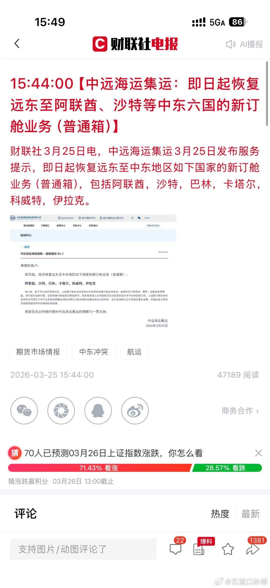 伊朗称美中东投资将不复存在 消息连连看。【中远海运集运:即日起恢复远东至阿联酋,沙特等中东六国的新订舱业务(普通箱)】。