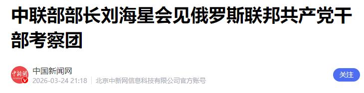 不等了,俄罗斯派人访华 3月24日,中共中央对外联络部部长刘海星在北京会见了由俄罗斯联邦共产党中央委员会主席团成员、中央书记德罗伯特率领的干部考察团,就中俄两国关系以及拓展更多领域合作等议题进行了交流,并达成了广泛的共识。 这对于中俄两国人民而言是一大利好,同时也为接下来普京访华铺平了道路。 这次见面,双方聊的都是实打实的话题,没有空话、套话,重点就是中俄两国的关系,还有怎么拓展更多领域的合作,聊完之后,双方也达成了广泛的共识。 德罗伯特明确表示,现在俄中关系已经达到了前所未有的新高度,各领域合作都取得了很多实实在在的成果。 他还说,中国共产党领导中国发展取得了巨大成就,赢得了全世界的尊重,俄罗斯联邦共产党非常重视研究和借鉴中国特色社会主义建设的经验,也一直在关注中国的“十五五”规划纲要,希望能和中国共产党加强各层级的往来,深化思想理论交流,推进地方、经贸、培训等各个领域的合作,让两党、两国的关系能再上一个新台阶。 中俄两国一直都是好朋友、好伙伴,这些年的合作越来越紧密,不管是经济上,还是民生上,都给两国老百姓带来了实实在在的好处。 就拿贸易来说,2024年中俄双边贸易额再创新高,2026年刚开始的1到2个月,双边贸易额又同比增长了12%,中国对俄罗斯的出口更是增长了22.7%。 咱们平时在超市里看到的俄罗斯奶粉、巧克力、食用油,还有俄罗斯的石油、天然气,都是两国贸易合作的成果;而中国的汽车、家电、日常消费品,也深受俄罗斯老百姓的喜欢,走进了他们的日常生活。 除了经贸合作,两国在很多其他领域也一直在深化合作。比如农业上,双方一起开展合作项目,加强农产品的生产、加工和销售,让两国老百姓都能吃到更优质的农产品;在物流上,优化通关流程,开通更多货运线路,让两国的商品能更快、更方便地运到对方国家;在教育和人文领域,2026年是“中俄教育年”,现在已有超过200所俄罗斯高校开设了汉语课程,两国的青年交流、学术往来也越来越密切,慢慢拉近了两国老百姓的距离。 这次俄罗斯派考察团访华,达成的广泛共识,其实就是把这些合作的方向再明确、再细化,让后续的合作能更顺畅、更高效。 而且大家都知道,之前中方已经正式向普京总统发出了访华邀请,俄罗斯方面也表示,访华的筹备工作已经开启,访华日期也即将公布。 这次考察团先来,就是提前把合作的细节聊透、把双方的需求对接好,为普京总统访华扫清障碍、铺平道路,让普京总统来访时,能集中精力推进更深入的合作,达成更多对两国有利的成果。 现在国际局势比较复杂,很多国家之间的合作都受到了影响,但中俄两国一直坚持相互支持、互利共赢,不管外部环境怎么变,两国的友好关系都没有变,合作的决心也没有变。 俄罗斯这次不等普京总统亲自来,先派考察团上门对接,也能看出他们对中俄合作的重视,对普京访华的重视。 对咱们老百姓来说,中俄合作得越好,好处就越多。比如商品种类更丰富,价格更实惠,咱们的生活能更方便;两国加强合作,也能带动更多的就业机会,让大家的收入更稳定;而且两国保持友好,也能让周边的环境更稳定,咱们的生活也能更安心。 这次考察团访华,虽然只是一次普通的外事会见,但意义却不小。它不仅巩固了中俄两国的友好关系,深化了双方的合作共识,更重要的是,为接下来普京总统访华做好了充分准备,为两国后续的深度合作打下了坚实基础。 这也让我们看到,中俄两国的合作,不是一句空话,而是实实在在为两国人民谋福利、为两国发展添动力。 相信在这次考察团访华达成共识的基础上,普京总统后续访华一定会顺顺利利,中俄两国也会在更多领域开展合作,让友好之花越开越艳,让两国老百姓都能从合作中得到更多实惠,让中俄新时代全面战略协作伙伴关系,持续向前发展,越来越好。