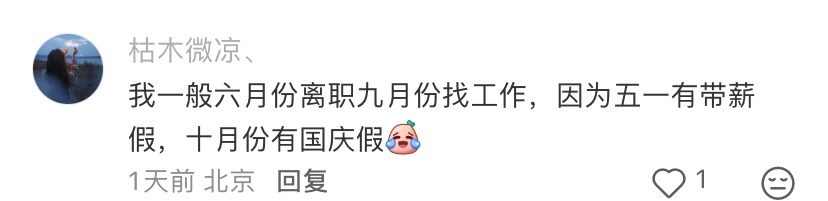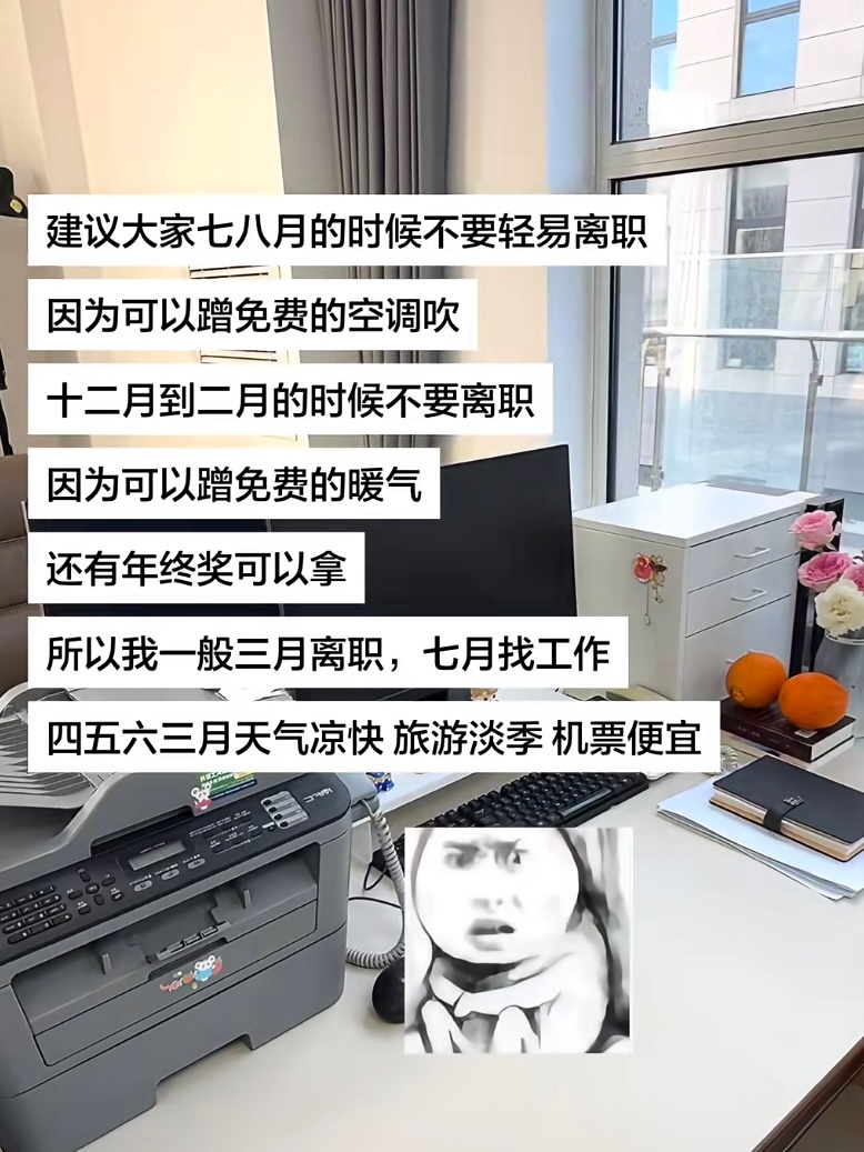 建议不要七八月份离职 因为顶着大太阳找工作显得个更加命苦了