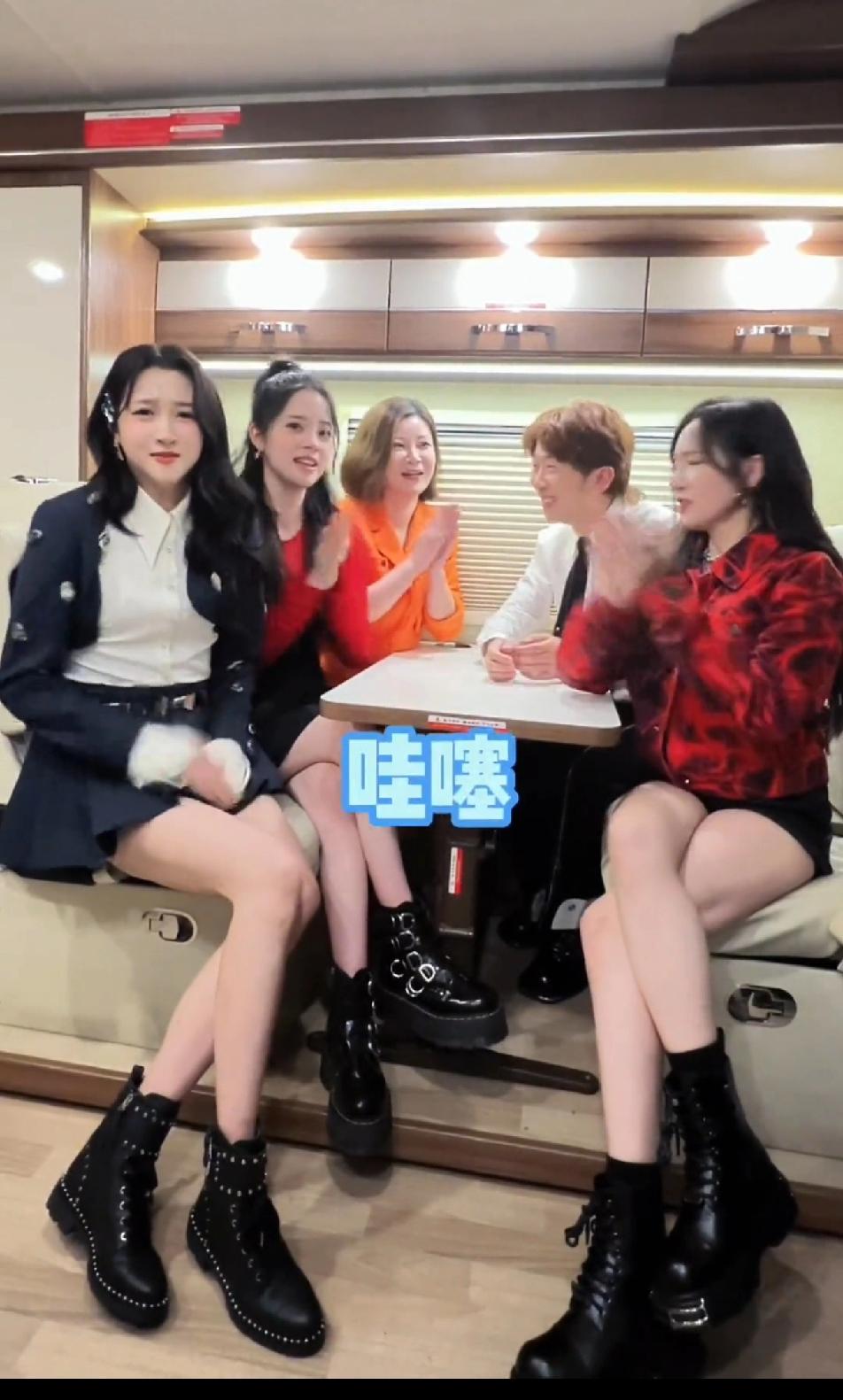 关晓彤的腿确实很吸睛,一般人千万别和关晓彤穿着短裙或者短裤坐在一起,欧阳娜娜和孟