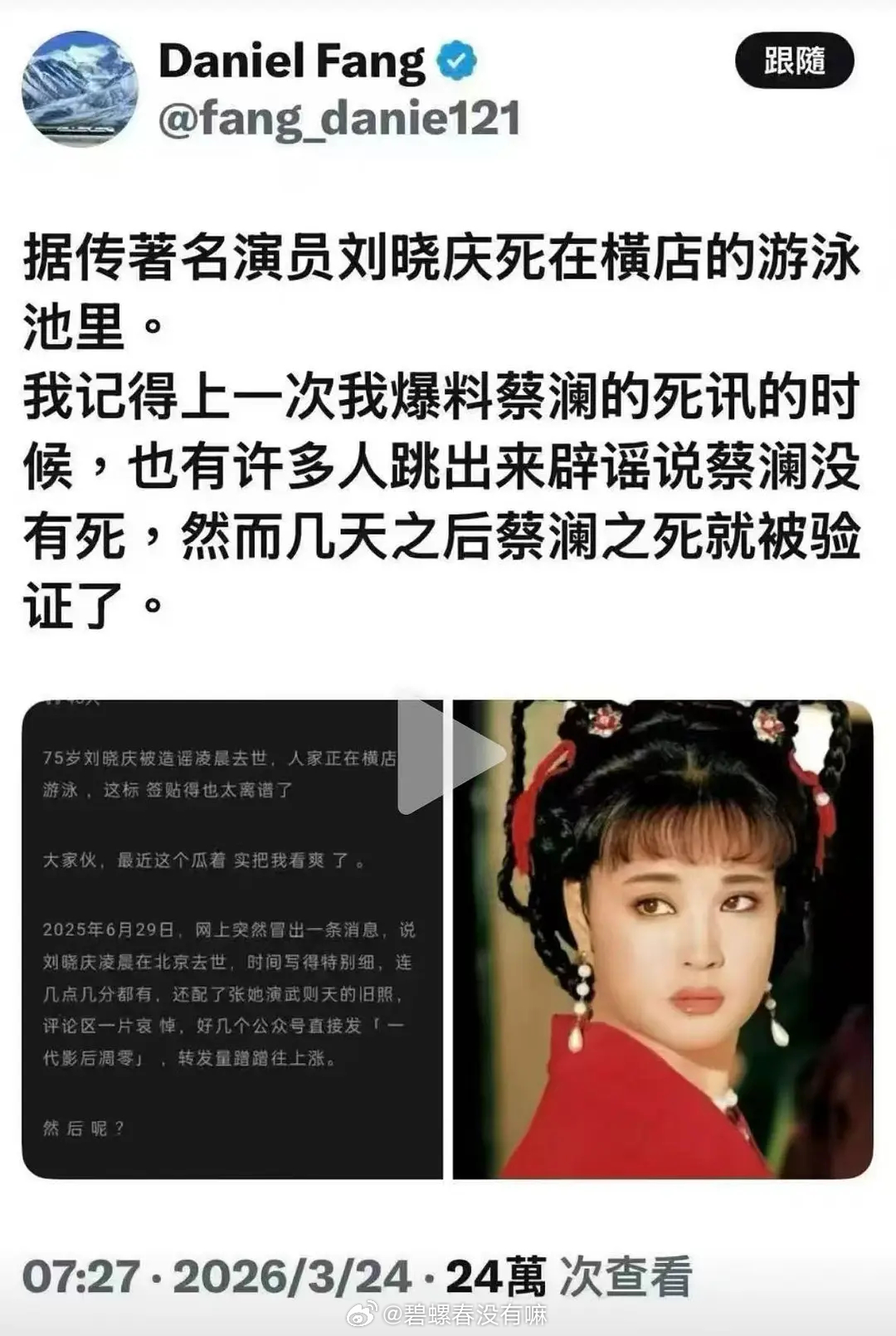 真的是升米恩斗米仇啊刘晓庆说散播她去世谣言的人是她外甥