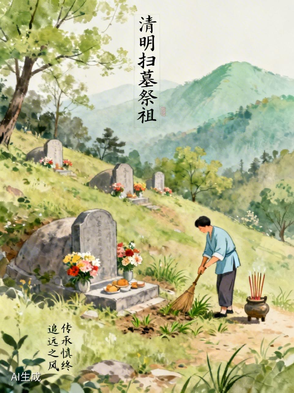 清明扫墓祭祖 传承慎终追远之风 清明时节,春和景明,扫墓祭祖成了不少人生活中的大事。这习俗源于寒食节,为纪念介子推而来,传承千年,是清明最核心的习俗。 以前扫墓,人们会带鲜花、供品,修整坟茔、清除杂草,再焚香烧纸钱。如今,绿色祭扫理念流行,鲜花祭扫、丝带寄哀思等文明方式成了主流,既缅怀先辈,又环保。而且随着城市化发展,很多年轻人无法回乡,“云祭扫”“网络祭祖”出现,虽然形式变了,但追思先人的核心未变。清明扫墓,不仅是追思,更是传承“慎终追远、敬老尽孝”的传统美德。