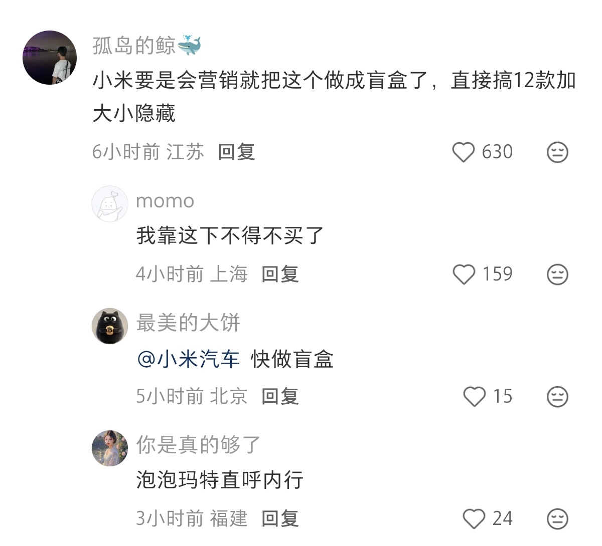 小米汽车,这里有一条通天路你走不走可以设计12个小萌宠,做个家族式IP。越受欢迎