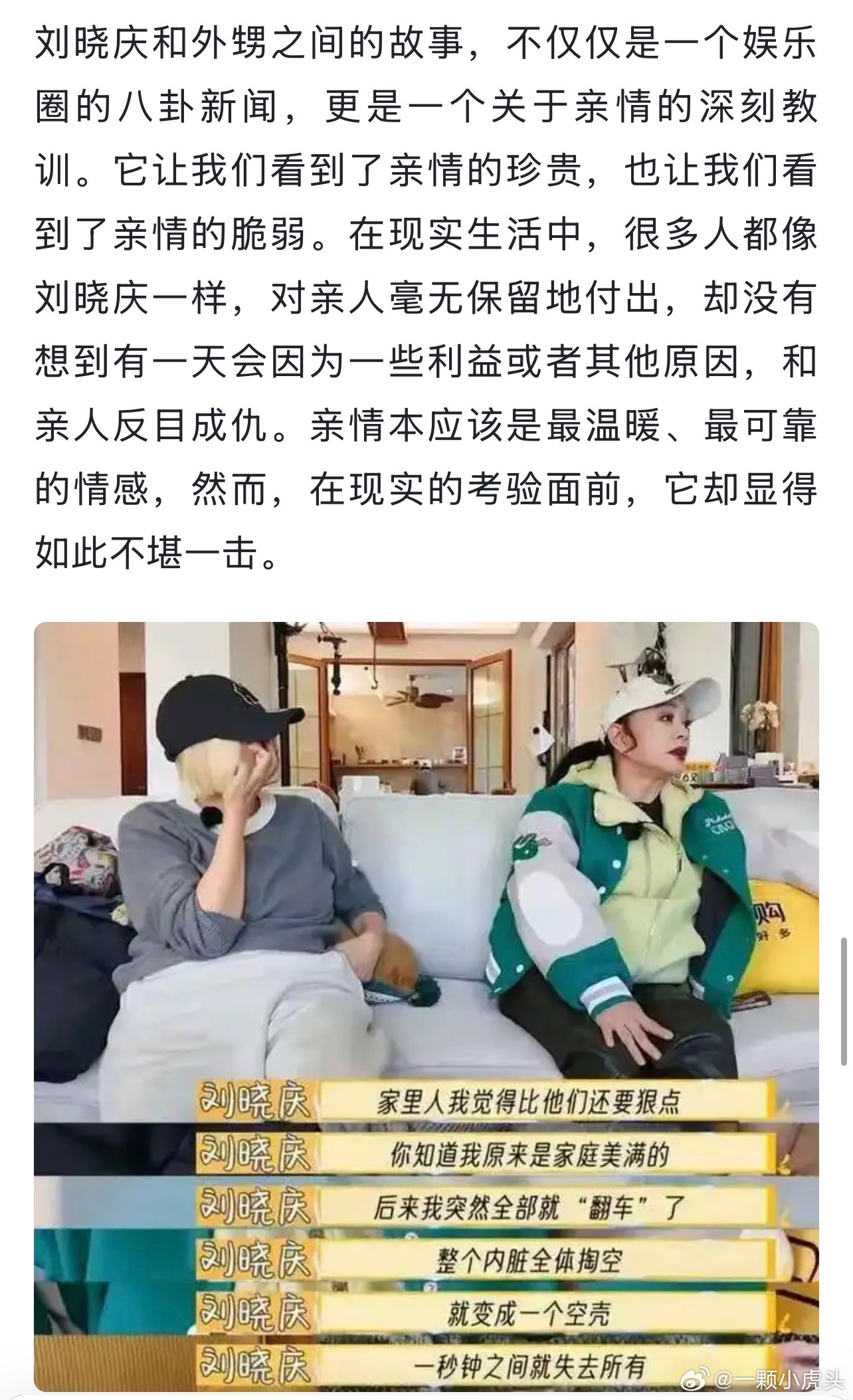 好像就是之前和刘晓庆亲如母子的那个妹妹的儿子,刘晓庆一无所有后,她这些亲人也全都变脸了,升米恩斗米仇啊。造谣刘晓庆去世的是她外甥