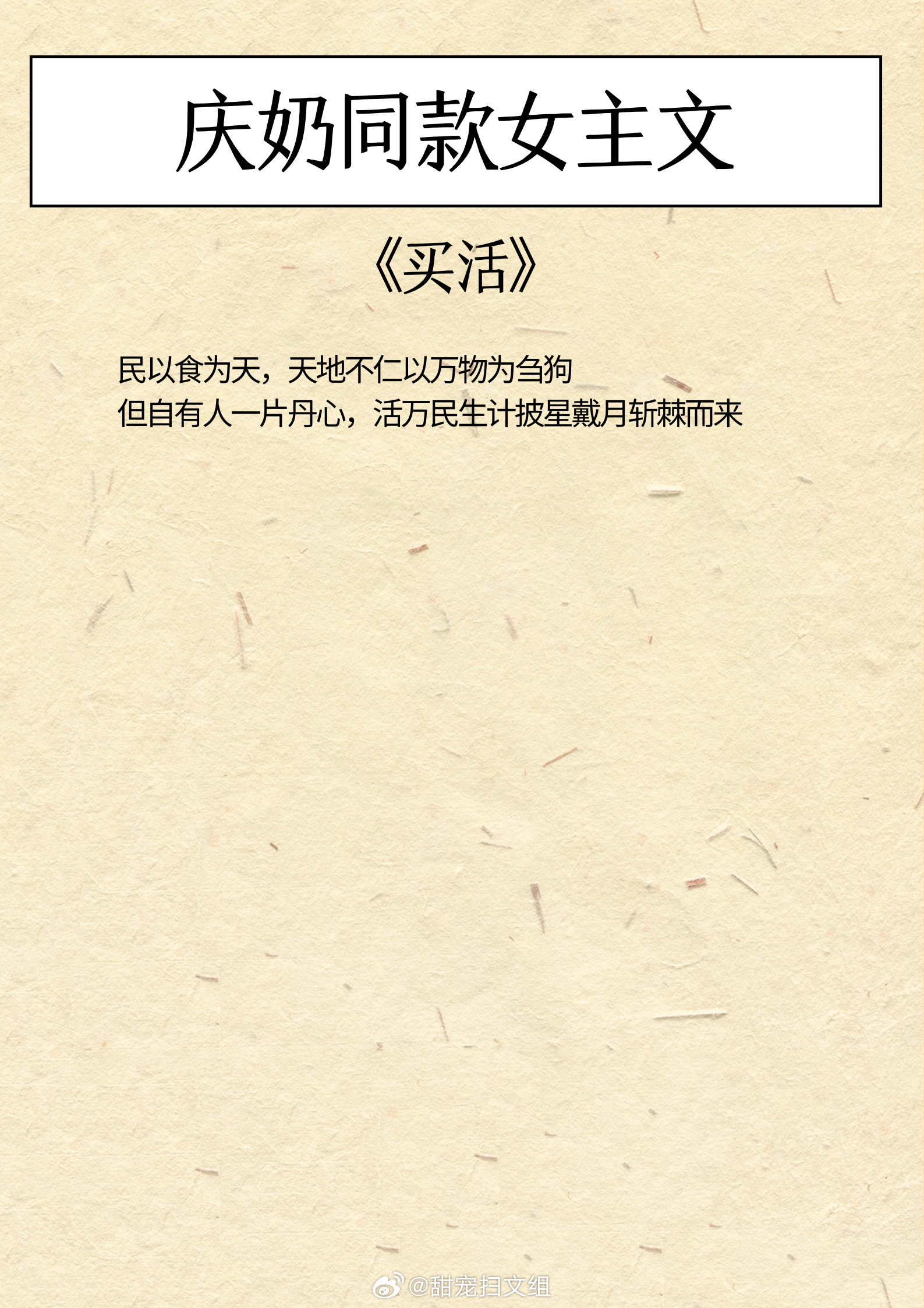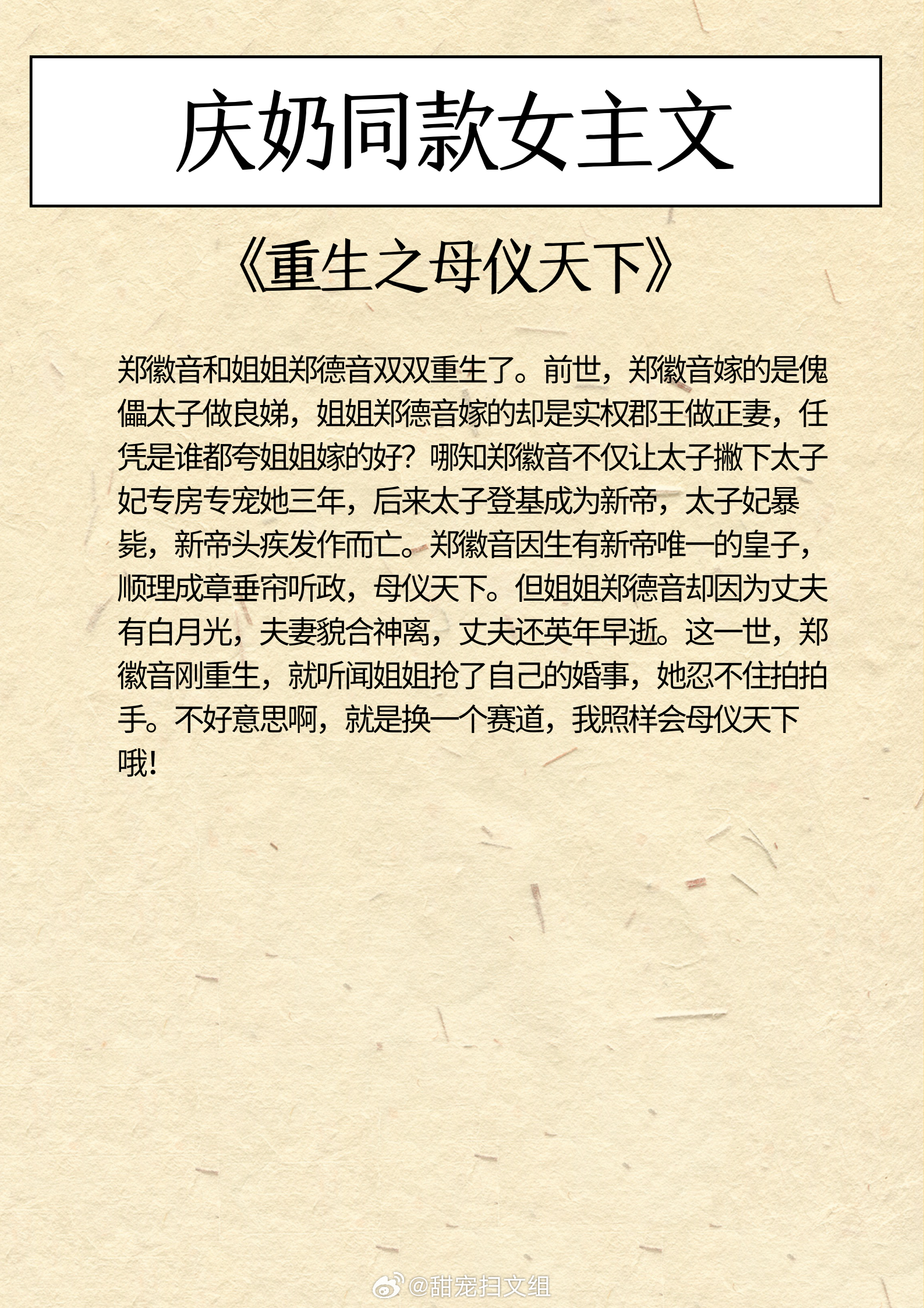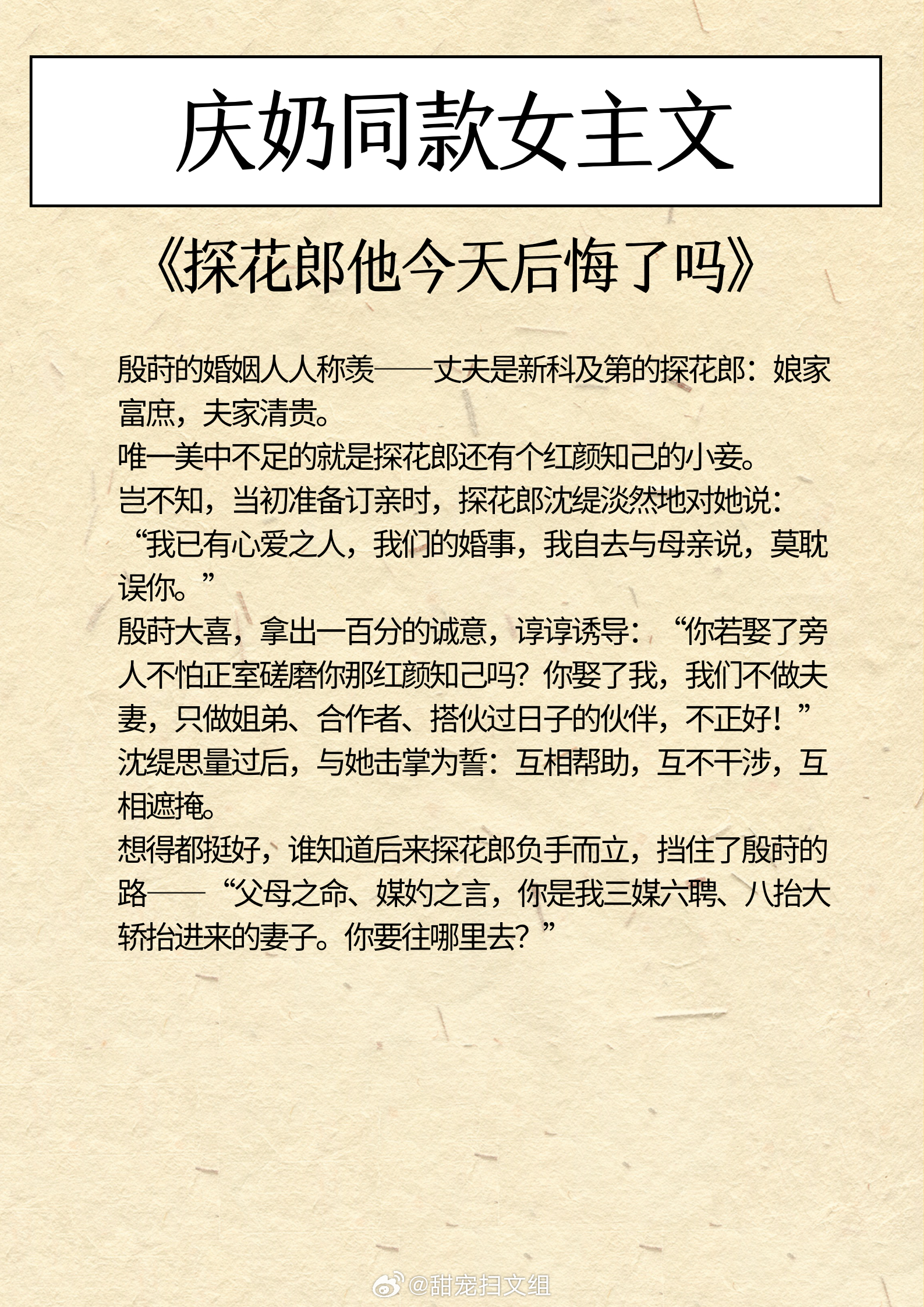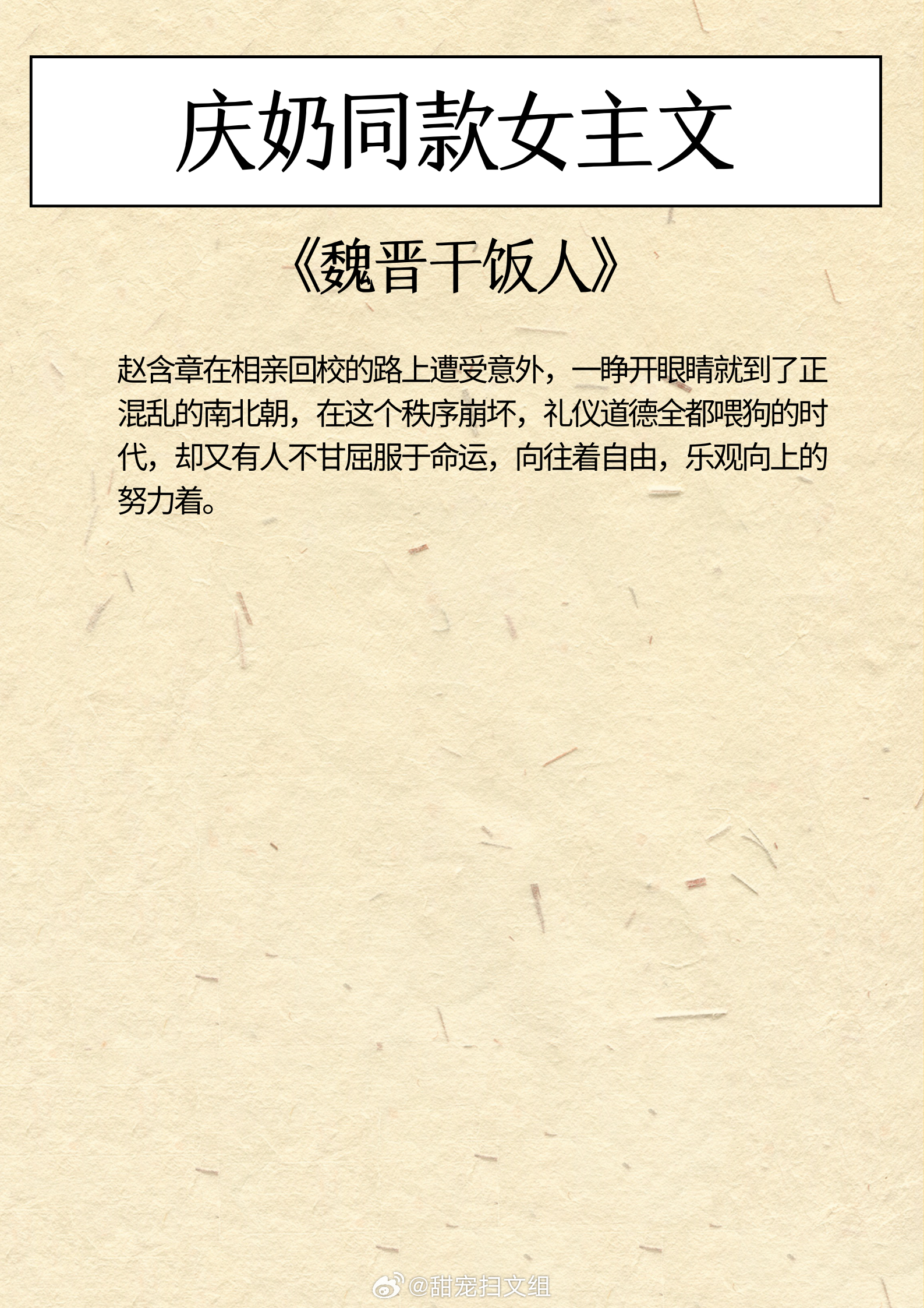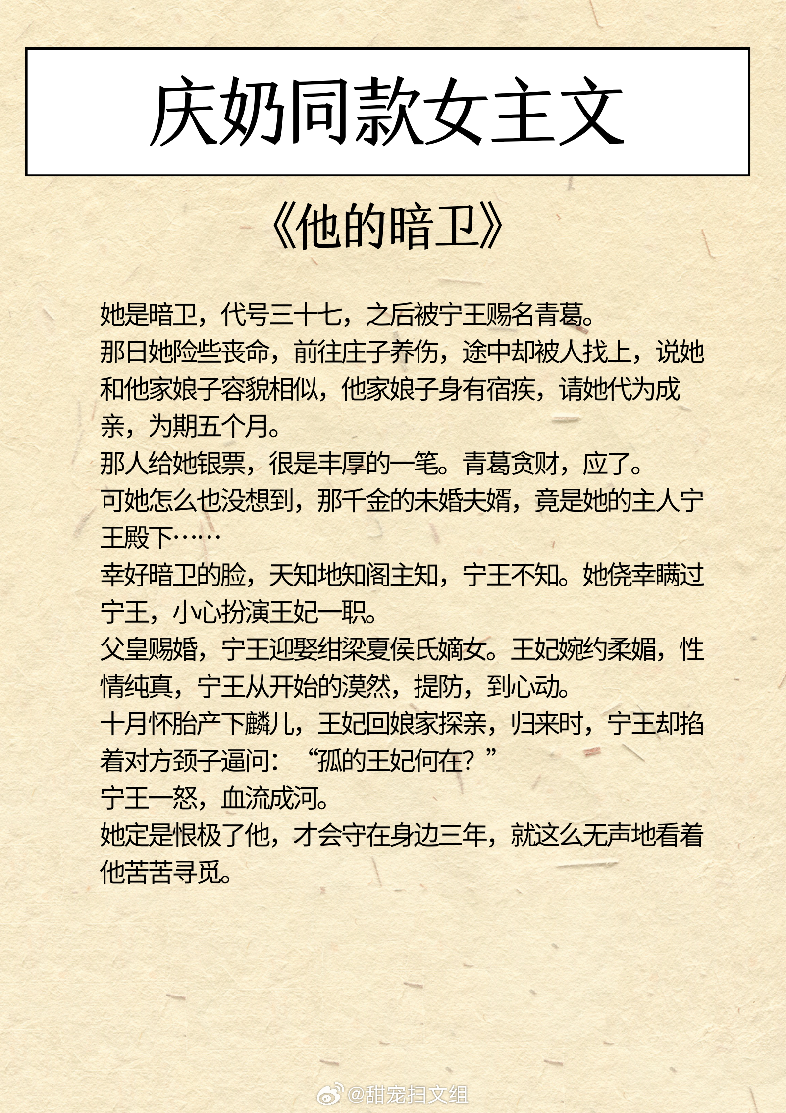 庆奶同款女主文,乐观豁达,生命力旺盛!做自己人生的大女主!1、《他的暗卫》作者:女王不在家2、《买活》作者:御井烹香3、《魏晋干饭人》作者:郁雨竹4、《探花郎他今天后悔了吗》作者:袖侧5、《穿越后被沉塘九次》作者:贡茶6、《重生之母仪天下》 作者:春未绿我的私人宝藏书单 那些让我着迷的小说