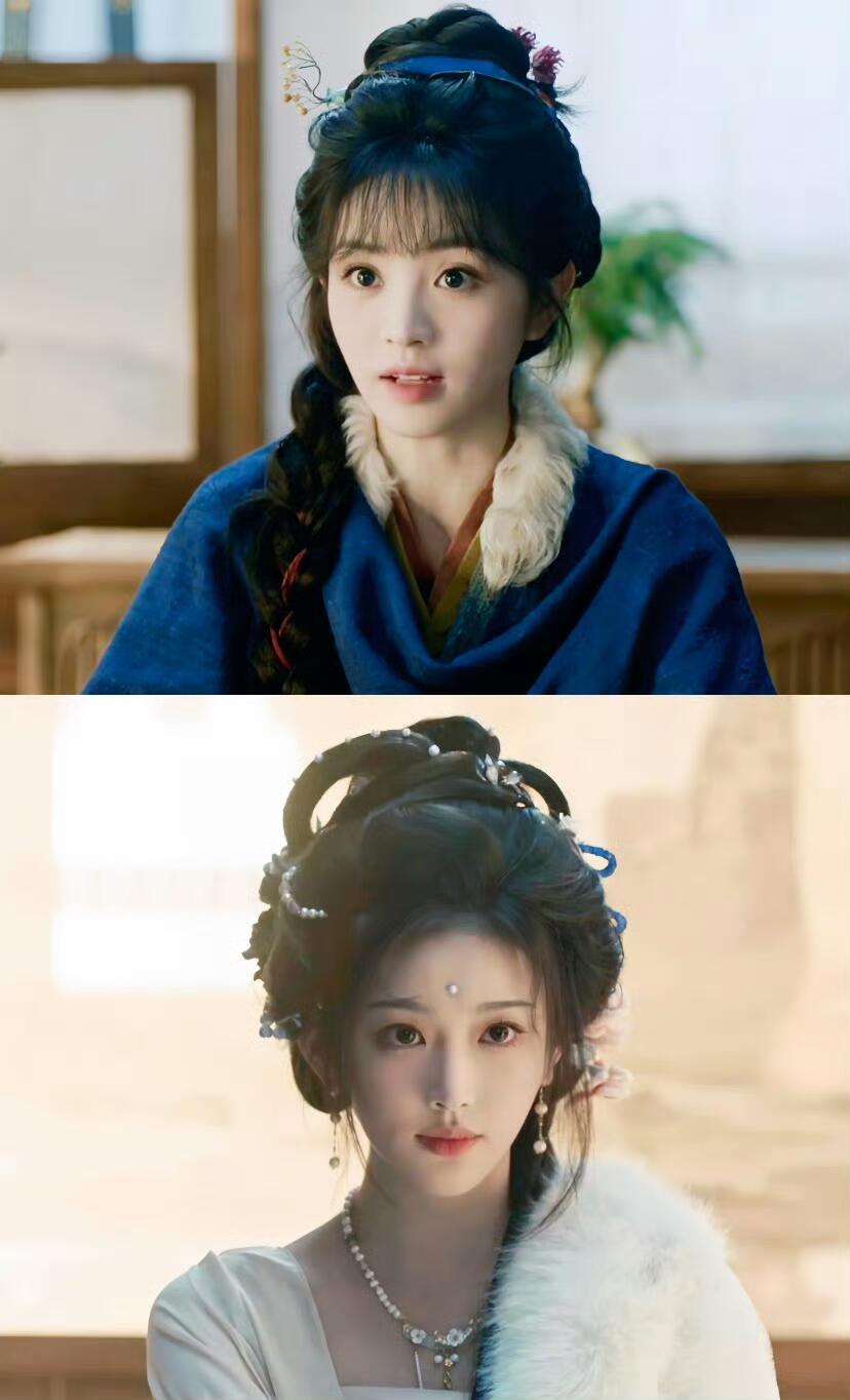 都说鞠婧祎拍戏是半永久,她可太冤了。对比一下,田曦薇也一直是铁刘海的造型啊。