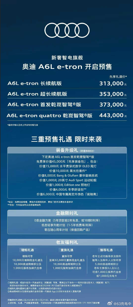 有意思,刚发布的全新 A6L,价格倒挂了,纯电车型的起售价比燃油版更低。