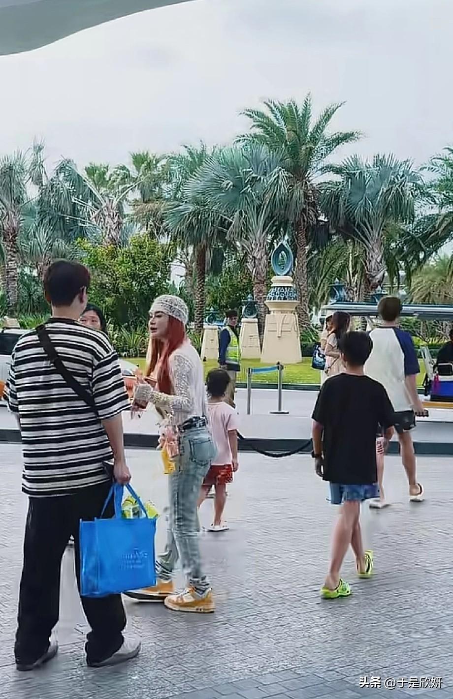 冉莹颖带娃出行太敢穿!透视蕾丝装引争议,儿子表情成最大亮点 近日,邹市明妻子冉莹颖带着两个儿子现身街头,一身夸张造型瞬间引爆热议。红发配白色蕾丝头巾,半透蕾丝上衣勾勒出曲线,下身搭配浅色牛仔裤,整个人又酷又媚,在人群中格外扎眼。 画面里,她一手搂着大儿子的肩膀,一手牵着小儿子,气场十足。但两个孩子的表情却成了“神助攻”——大儿子眉头紧锁、一脸生无可恋,小儿子也抿着嘴不愿抬头,仿佛在默默承受妈妈穿搭带来的“社死”,让网友笑称“娃都替妈妈尴尬了”。 有人夸她状态逆天,40岁还能保持少女感,红发造型又野又美;也有人吐槽“带娃穿透视装太不得体”,觉得母子同框时,这样的穿搭容易模糊界限感。更有网友调侃:“邹市明要是在现场,估计得赶紧把老婆裹紧点!” 一边是女性穿衣自由的拥护,一边是亲子场合得体性的讨论,你觉得冉莹颖这一身,是时尚大胆还是用力过猛?