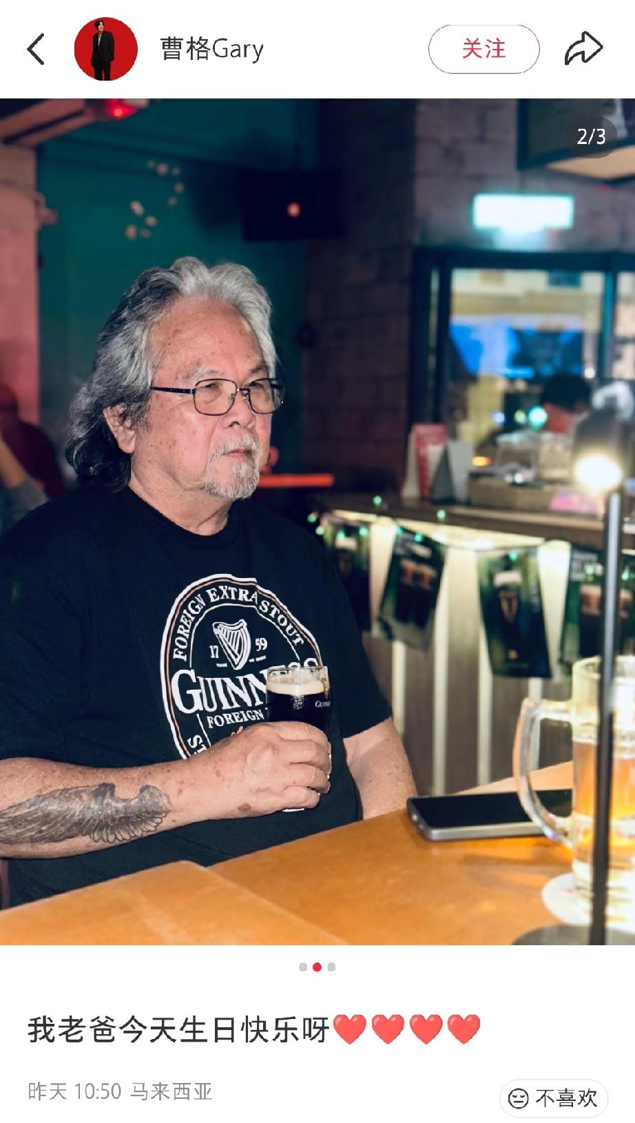 歌手曹格发图给父亲过生日,一家人去了家海边餐厅吃饭,曹格父亲留着一头长发,白发苍苍,看着很文艺范,年纪约莫七十左右了,看着还是挺年轻的。 曹格出生在马来西亚,祖籍广东,他父亲在马来西亚是名律师,现在应该是退休了,曹格现在做歌手收入应该也不错。 现在46岁的曹格虽然离婚了,但有一个帅气的儿子,一个漂亮的女儿,儿女双全,家人常伴,也是很幸福了。