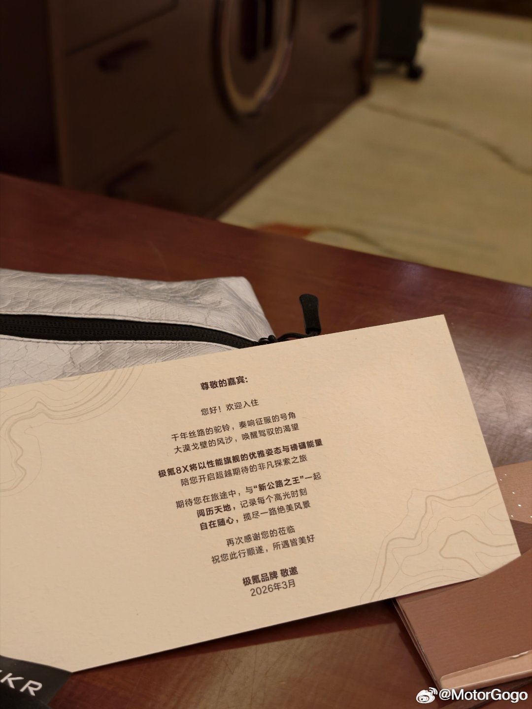 过来敦煌参加极氪 8X 的试驾,房间满满的仪式感。这个房间的卡套很漂亮,有喜欢的