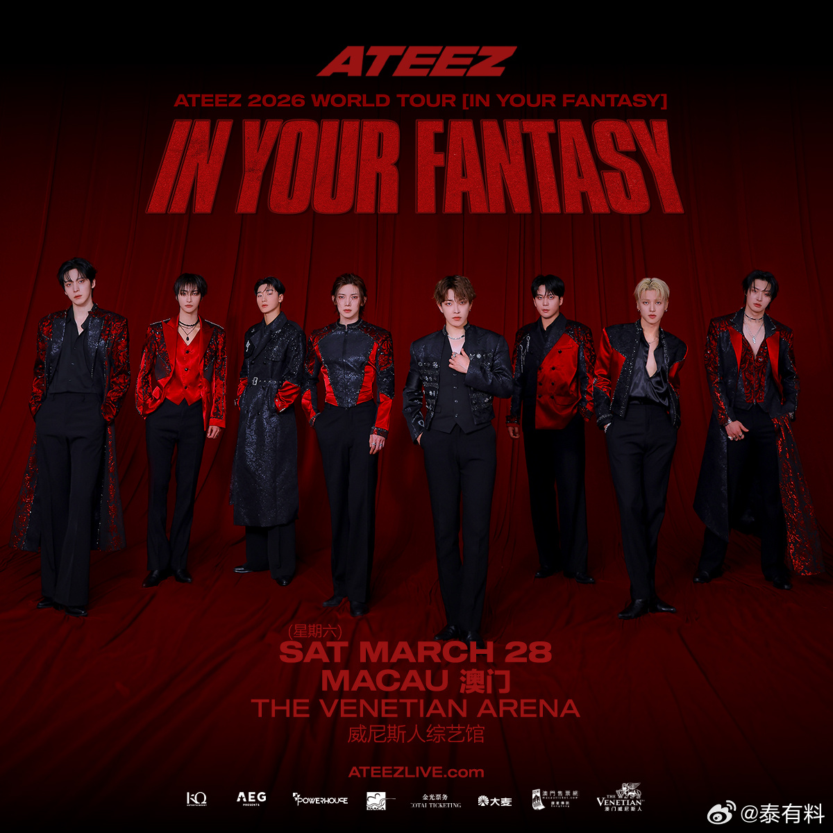 ATINY请注意🚨 ATEEZ澳门演唱会安排上了!演出时间是 3月28日(周六)18:30,场馆为 澳门威尼斯人综艺馆 👀 喜欢高能量现场的朋友真的可以重点关注,ATEEZ的舞台感染力一直都很绝,现场一定会很燃🌊ATEEZATEEZATEEZ澳门演唱会
