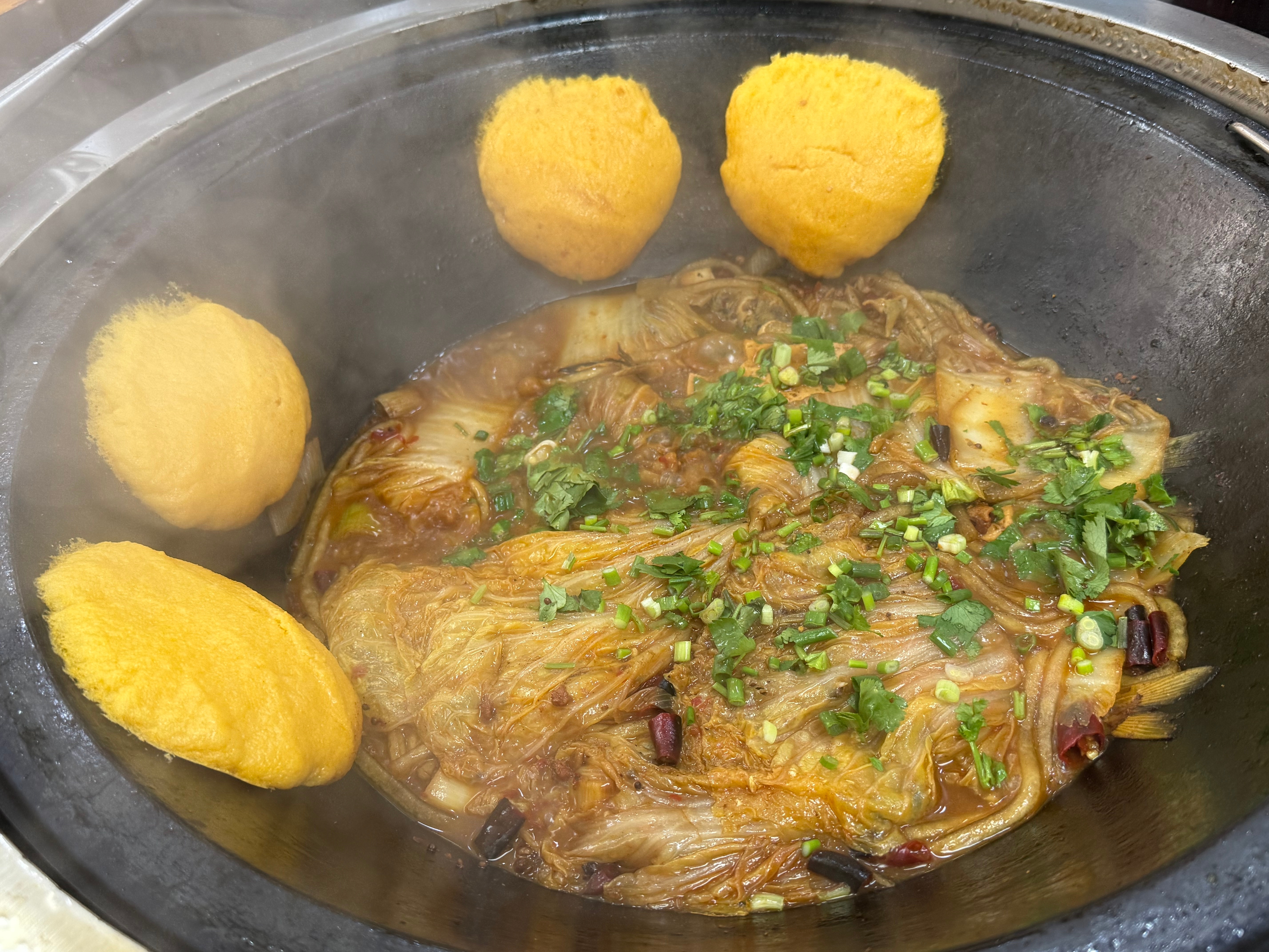 北京郊区必吃榜:铁锅炖+贴饼子(东北菜)😈 两斤半鮰鱼+土豆+大白菜+土豆粉+