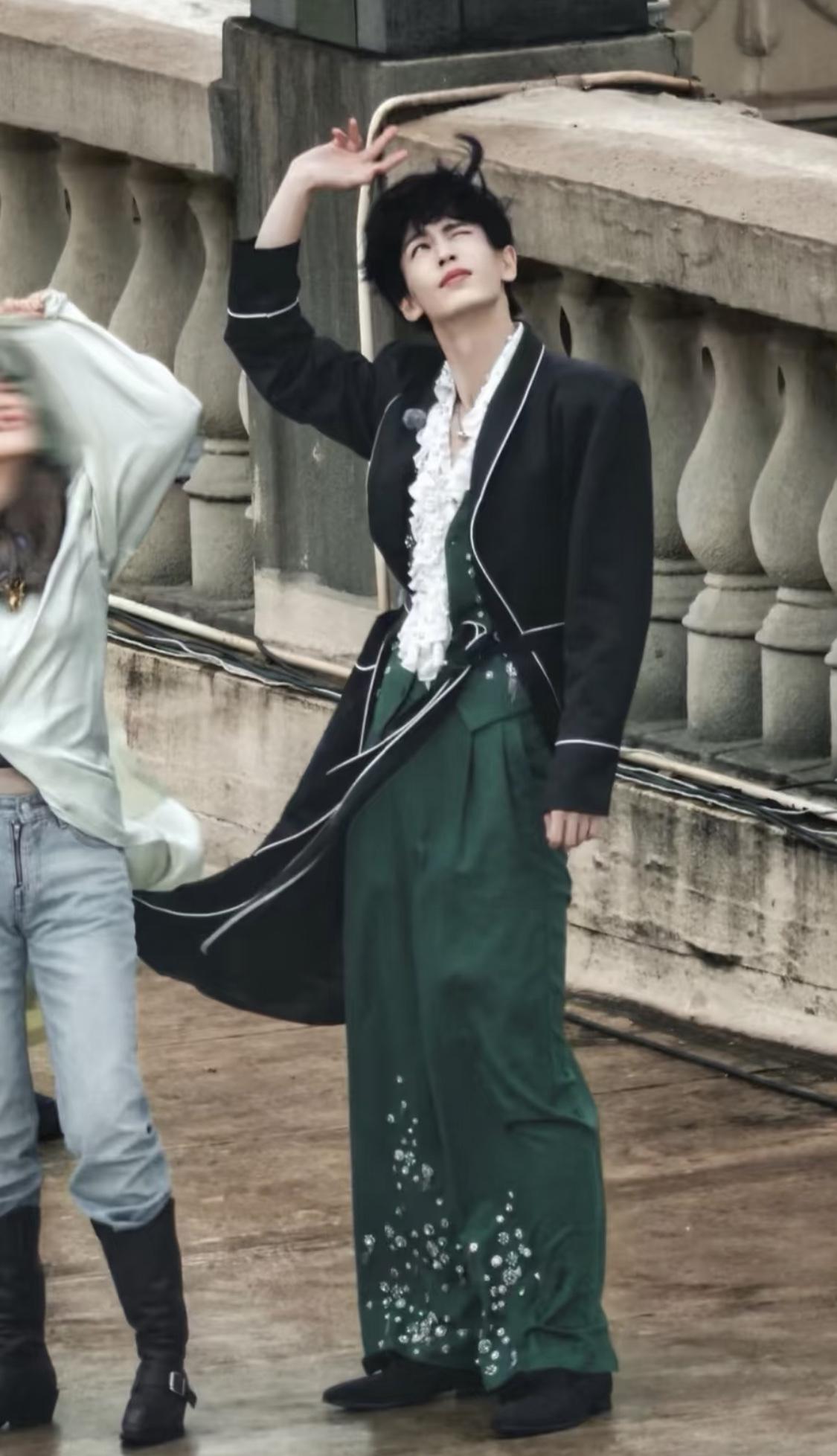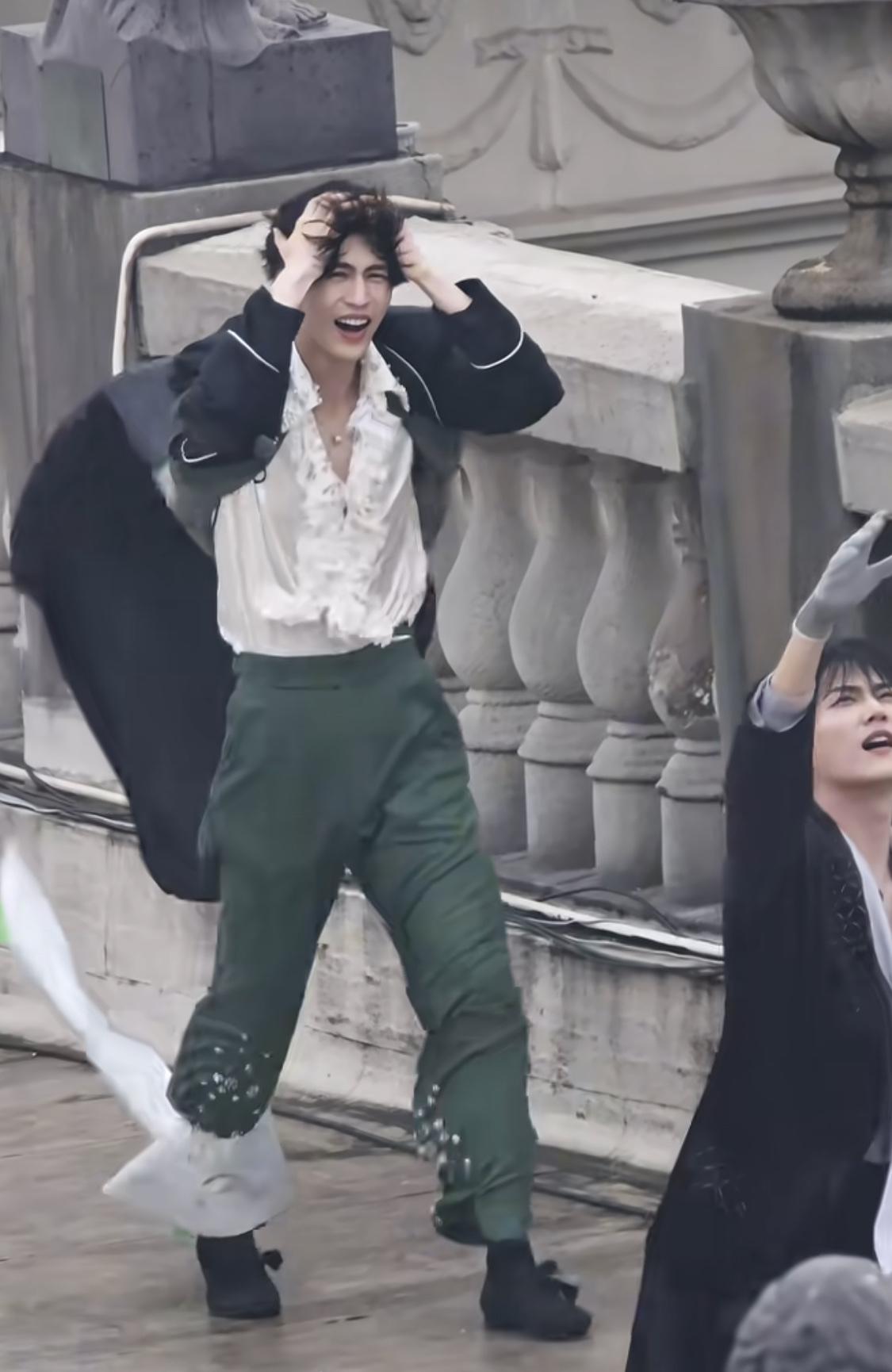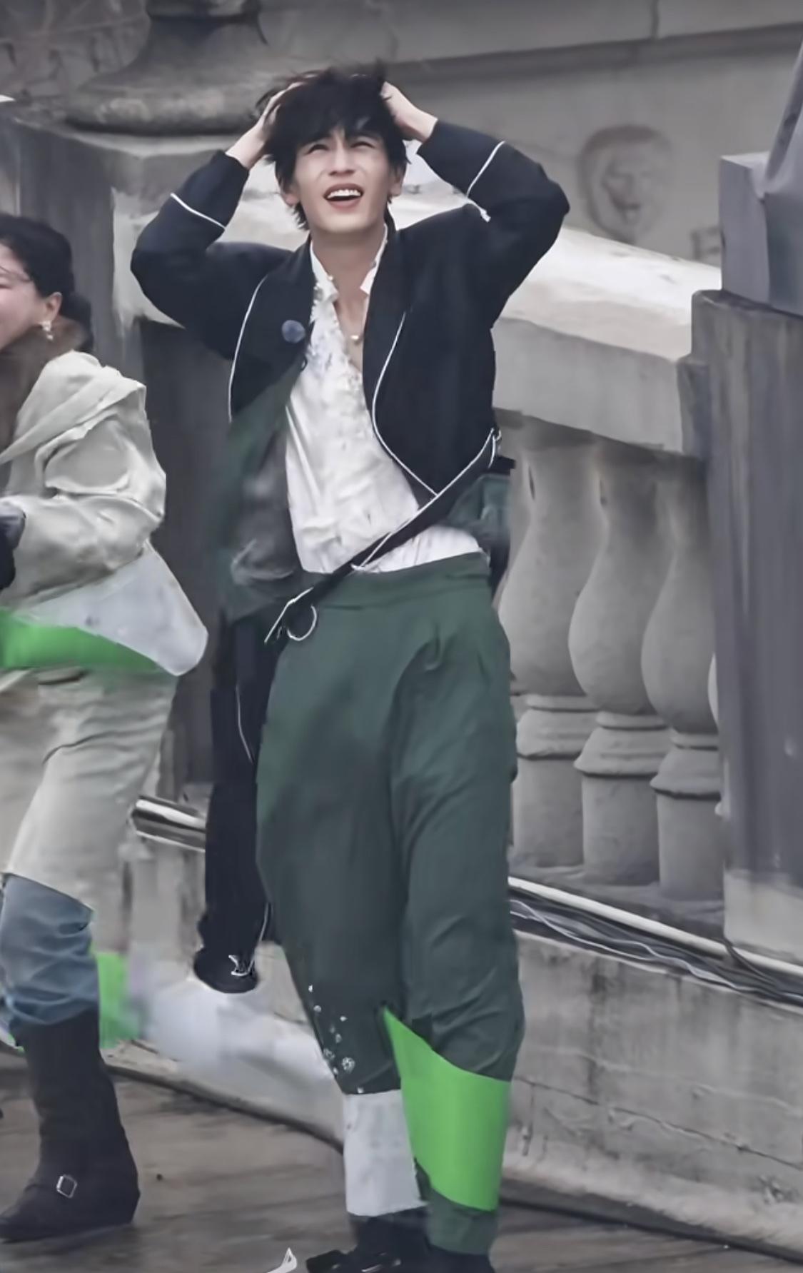 帅不过1秒的张凌赫,太搞笑了……,不过这一秒是真的帅啊。 原本还在想怎么突然就起风了呢,这风来的好快啊,看了全景图才知道是他们头上面有直升飞机,螺旋桨带起来的风。 每个人都被吹得很狼狈,张凌赫直接护住自己的头发,还是被吹成了海胆头, 逐玉 张凌赫