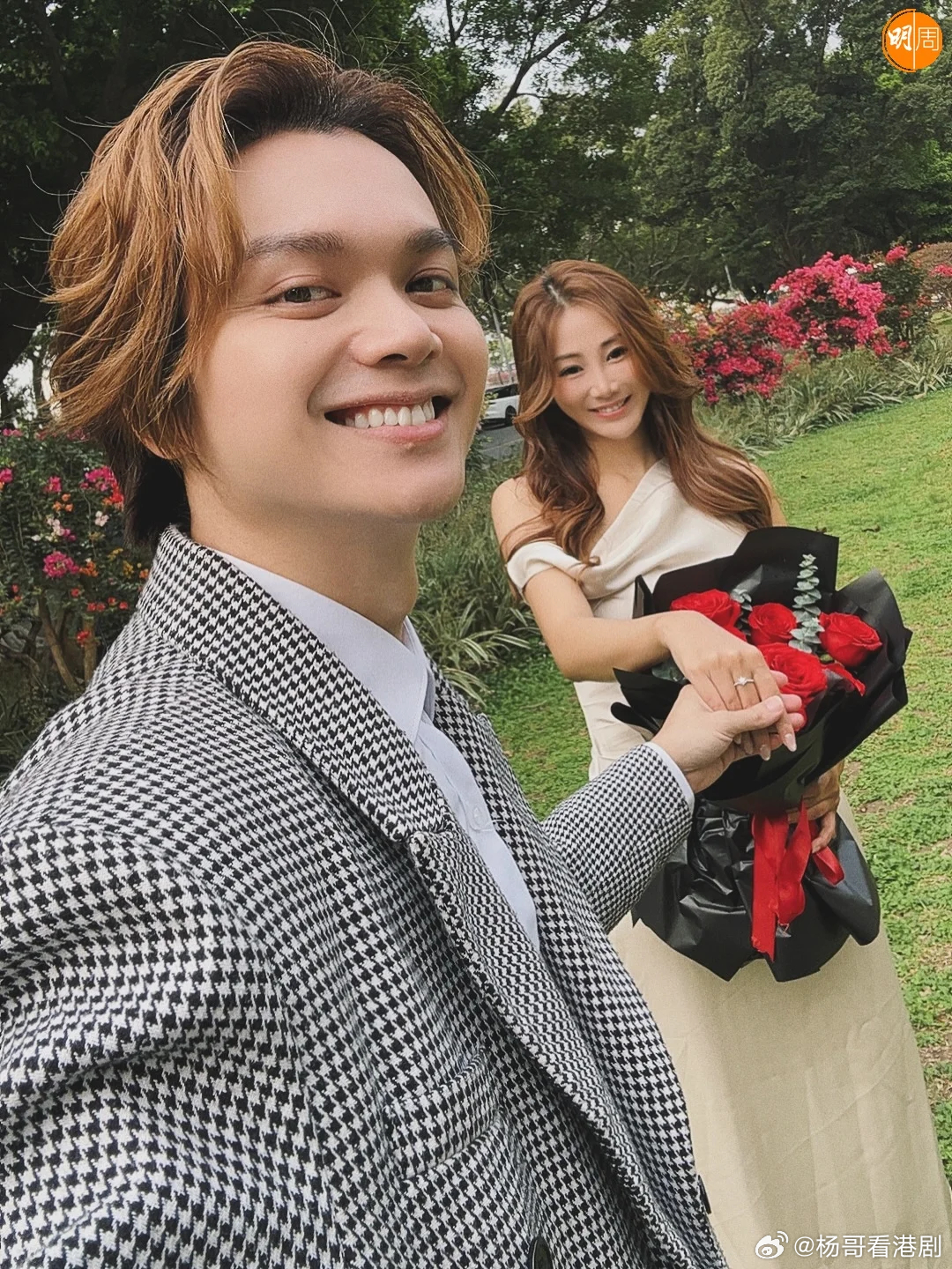 「我哋都唔完美。我嘅稜角與缺口,自己都數唔清。但如果人生只有一次相守嘅機會,我想同佢試吓。唔為咗圓滿,只為咗將我所有唔太熟練嘅愛,都交到佢手裡。多謝Kelton牽咗嗰條線,多謝TVB《中年好聲音》令兩條平行線有咗交點。更要多謝你——陶枳樽,成為我嘅未婚妻。」