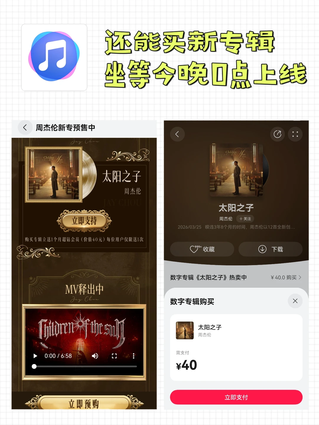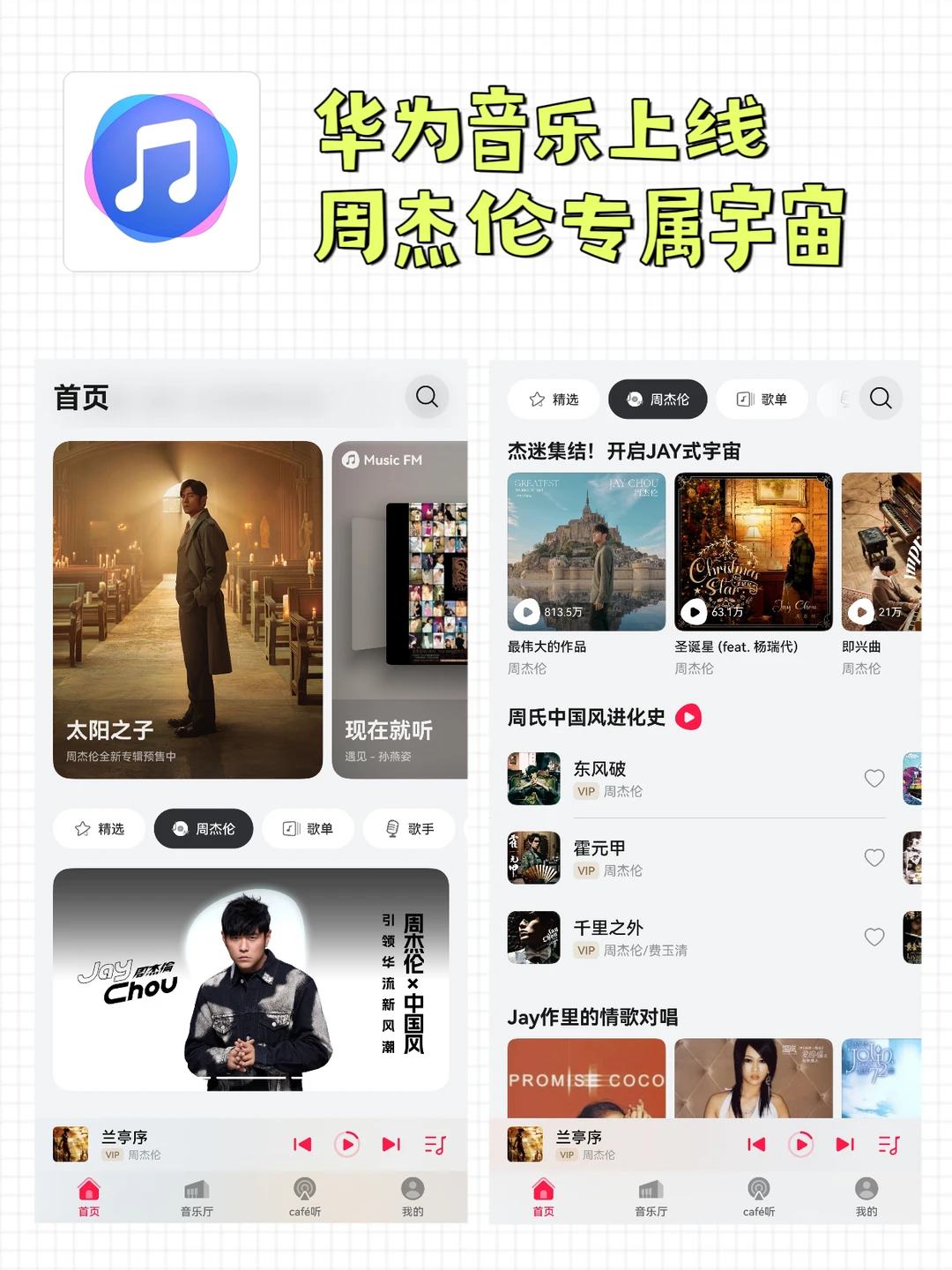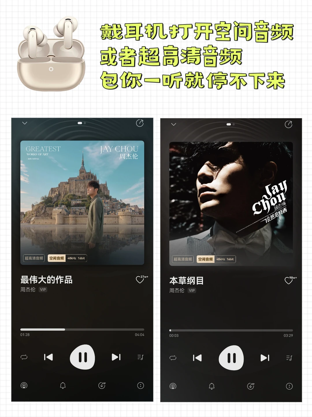 华为音乐上线了「周杰伦」专属页面![派对R] 听周董的歌一定要把超高清音频或者空间音频打开(每一首歌都有哦~[害羞R]) [绿色心形R]点亮超高清音频,听感瞬间上升N个level ,细微的尾音也听得清 [绿色心形R]切换到空间音频,在家就能听出演唱会现场的感觉 [绿色心形R]如果你有FreeBuds Pro5,再打开空间音频头部跟踪,一听一个不吱声 [火R]《太阳之子》新专辑在华为音乐也能直接买 不用切APP ,打开就是纯净听歌界面~ 这40元我已经花了,坐等零点新歌上线![萌萌哒R]