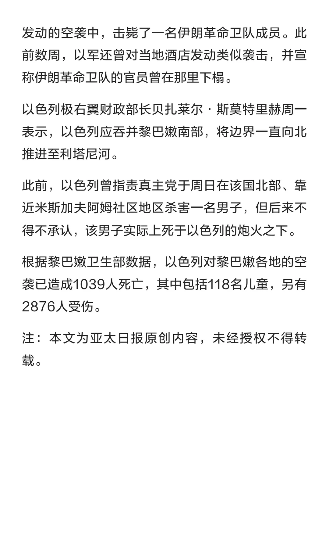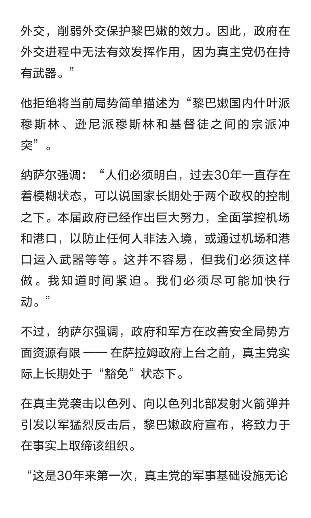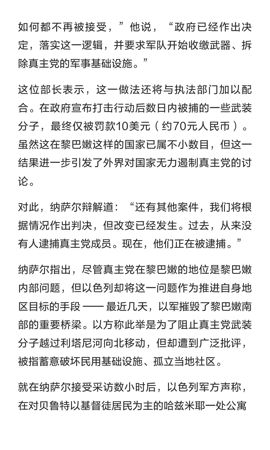 黎巴嫩司法部长:真主党给以色列袭击黎巴嫩