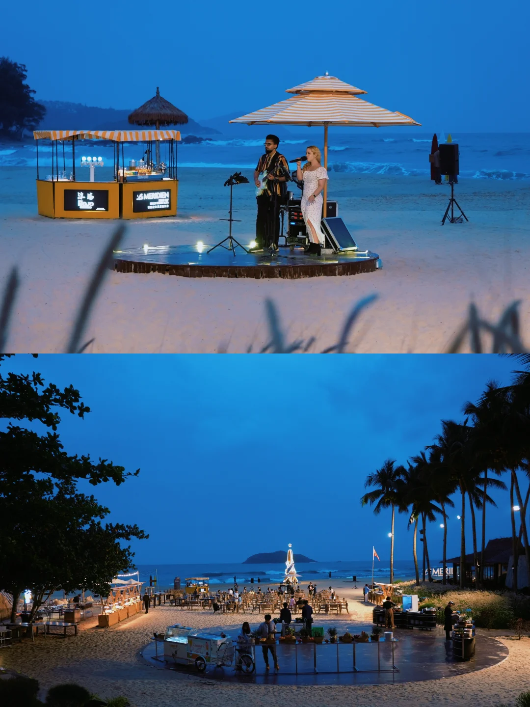 可以在室外沙滩上,也可以在地平线餐厅的室内来用餐,有烧烤、火锅、海鲜、椰子,氛围很好,还有驻唱!