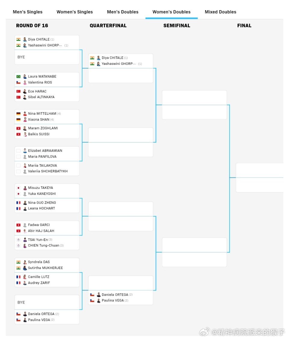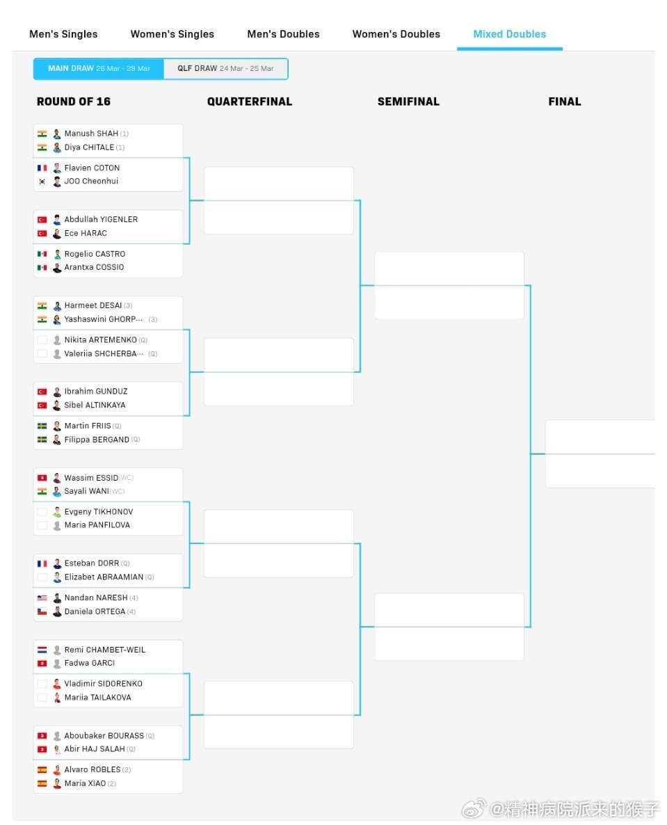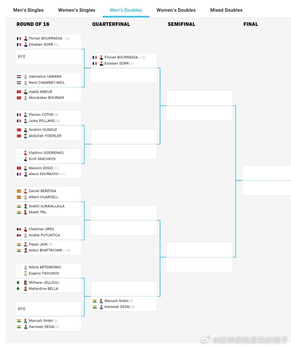 2026WTT突尼斯常规挑战赛正赛签表:3月26日-29日