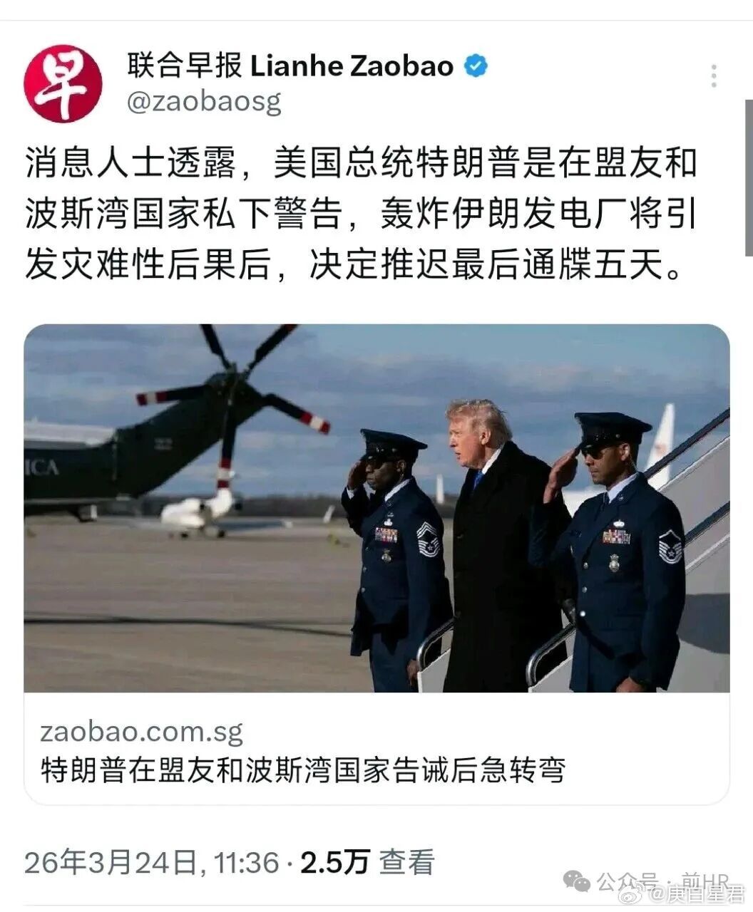 近日,关于美国对伊朗政策的戏剧性反转,再次撕开了美国政治窗户纸,所谓的国家安全决策,背后早已沦为个人利益与政治勒索的角斗场。外媒说,据消息人士透露,特朗普原本已准备对伊朗发电厂下达轰炸的最后通牒,但在盟友及波斯湾国家的私下警告——称此举将引发灾难性后果,之后,他决定将期限推迟五天。这一“紧急刹车”表面是顾及地区稳定,实际上暴露了白宫决策的混乱与投机性。前国务卿布林肯更是直言,特朗普其实是被内塔尼亚胡“胁迫”。