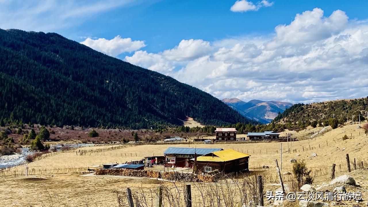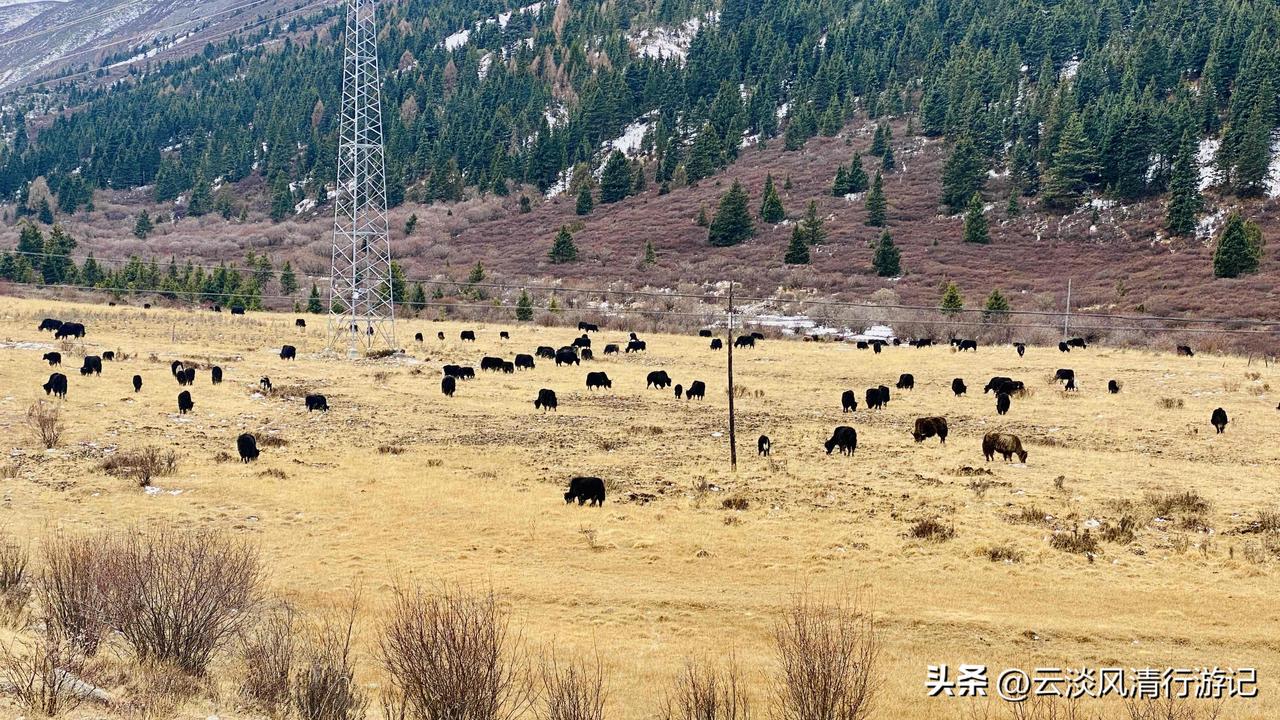 玉科草原最美的季节是夏秋两季,夏天碧草如茵、花开成海,秋节则草原金黄、彩林斑斓。遗憾的是我去的这个时节有些尴尬,高原寒风彻骨,草木尚未复苏,家住玉科镇上的布达阿妹也说我去的太早了。不过牛儿马儿在蓝天白云下的金黄草场上悠闲吃草的画面,已经让我沉醉,抵消了夜晚透骨的寒冷和高海拔胸闷睡不踏实的不适。