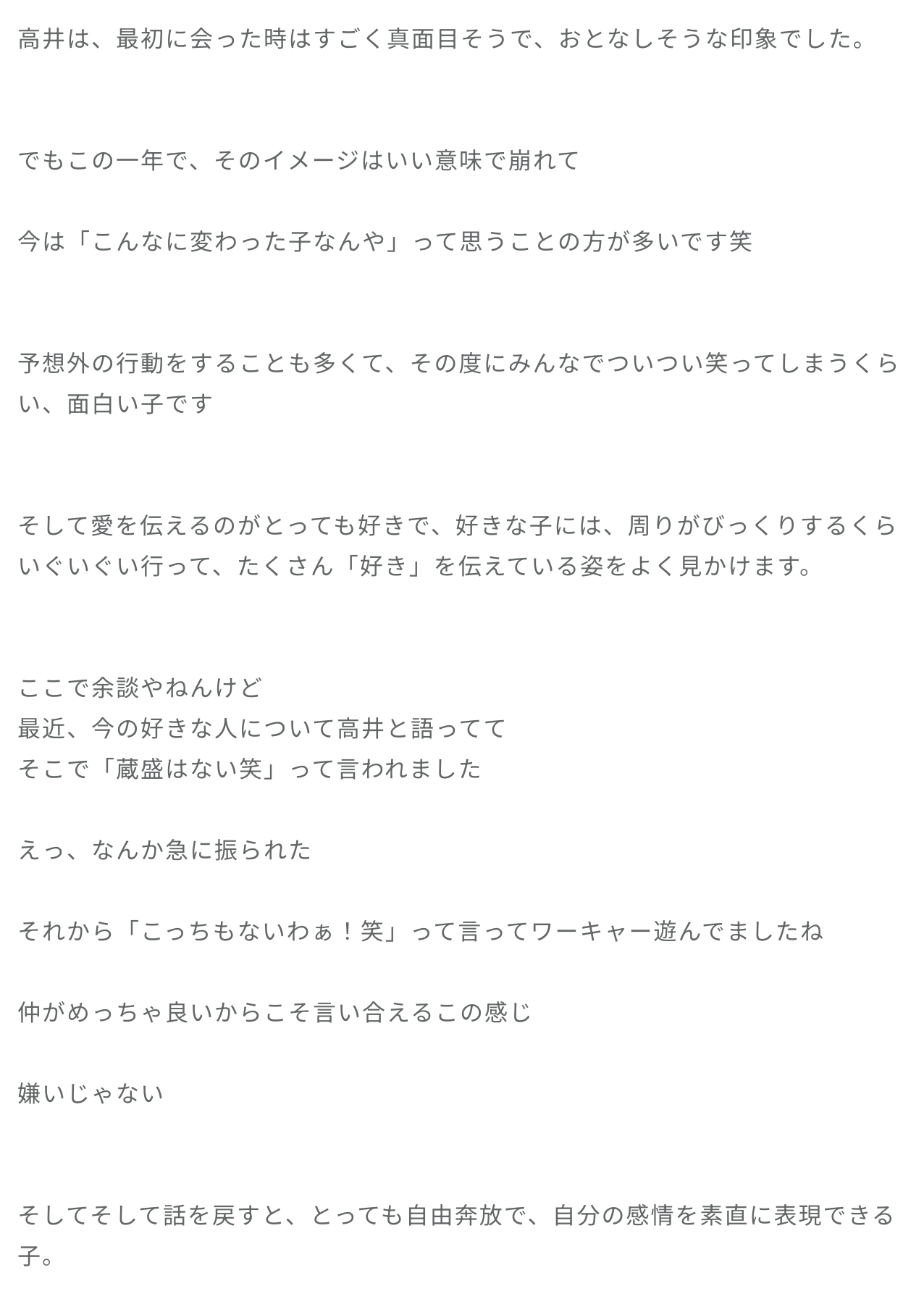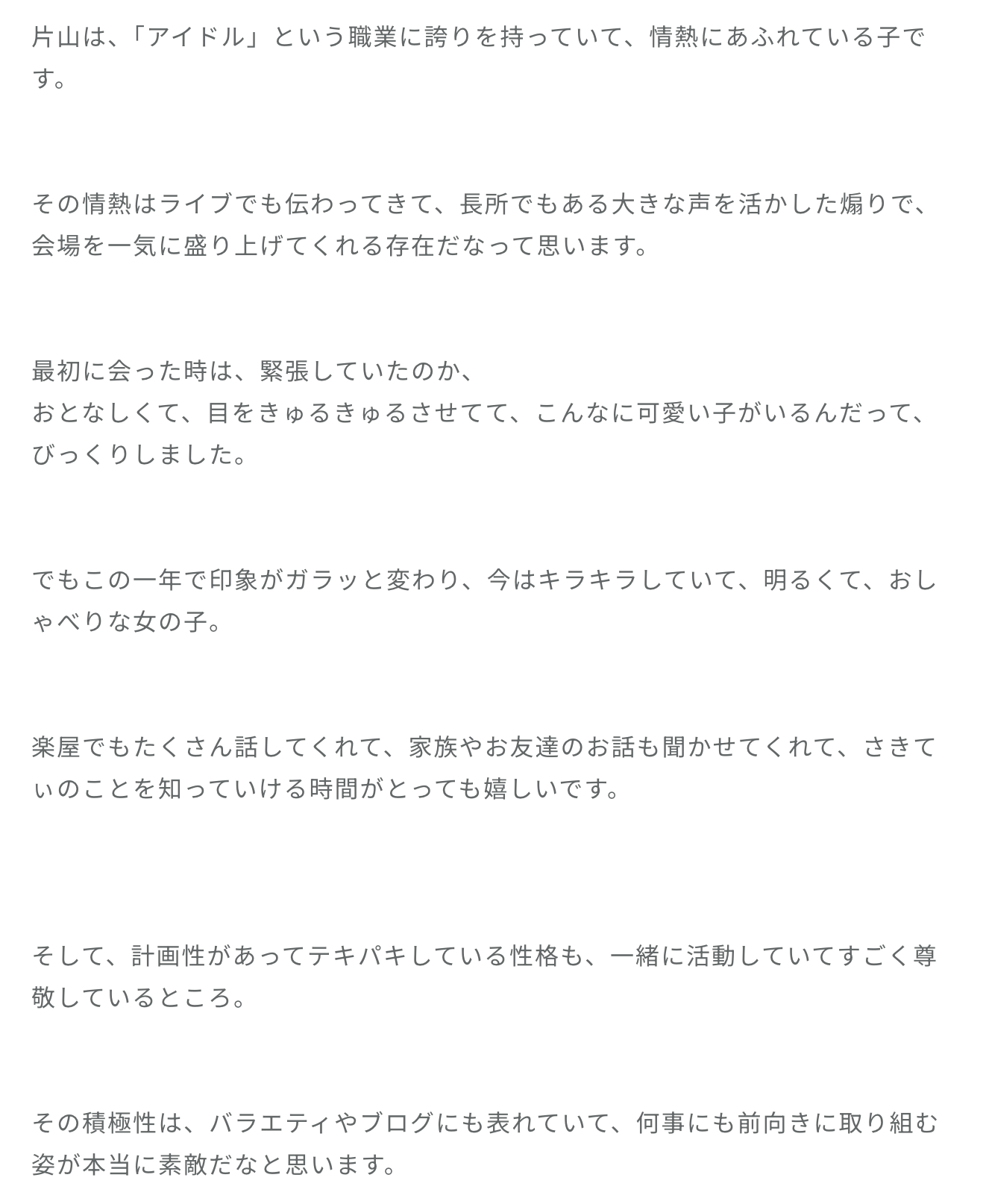 蔵盛妃那乃「普段お仕事の合間でお弁当をいただくことがあって、いつも何種類かのお弁当を用意してくださるんですよ。お魚〜とかハンバーグ〜とか、そこで最近私は何があってもチキンを選ぶっていう謎の使命感に駆られてまして。ポカじゃないよ チキンだよ」