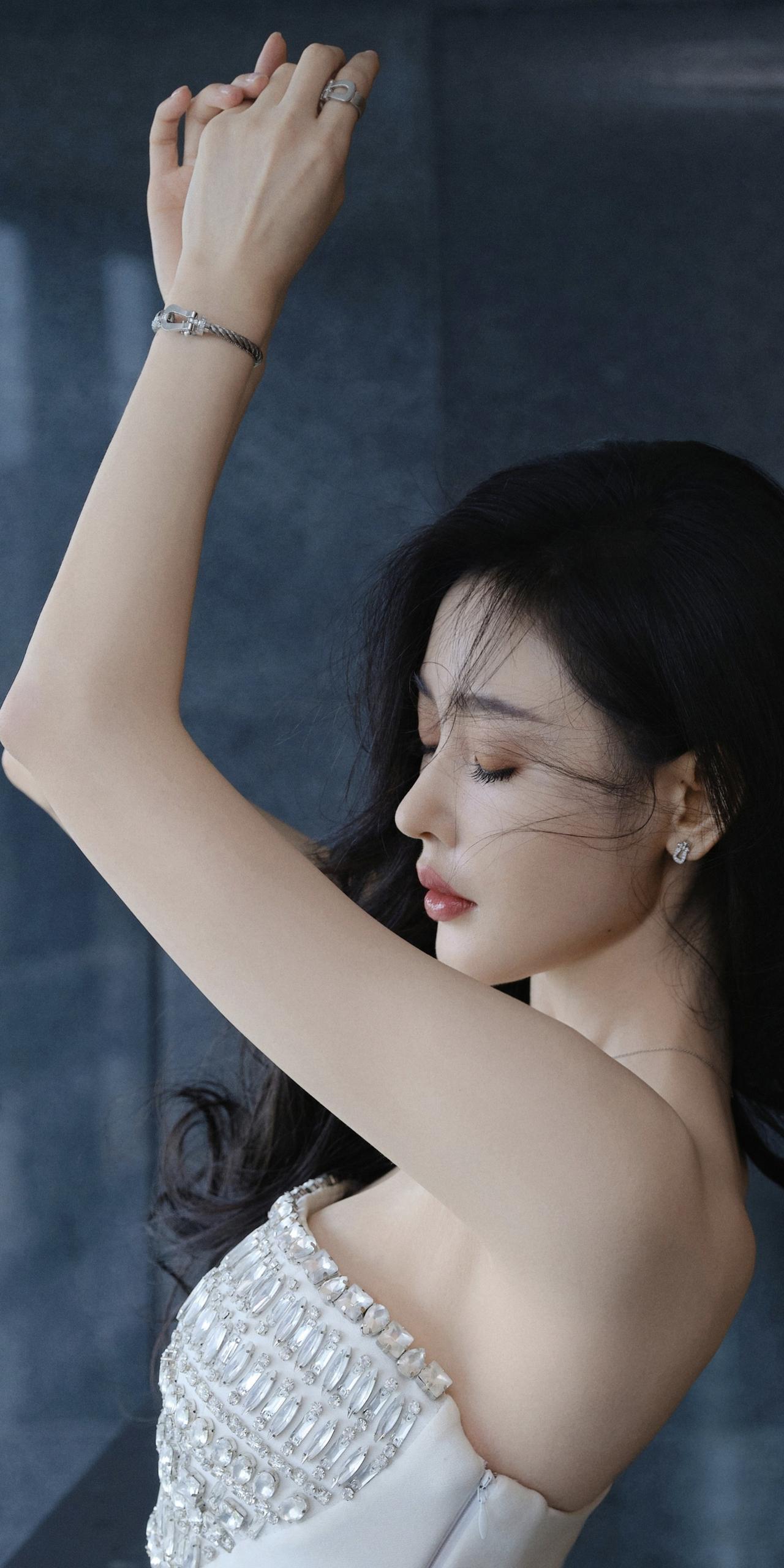 张天爱挂脖星钻裙,明眸红唇精致迷人。张天爱