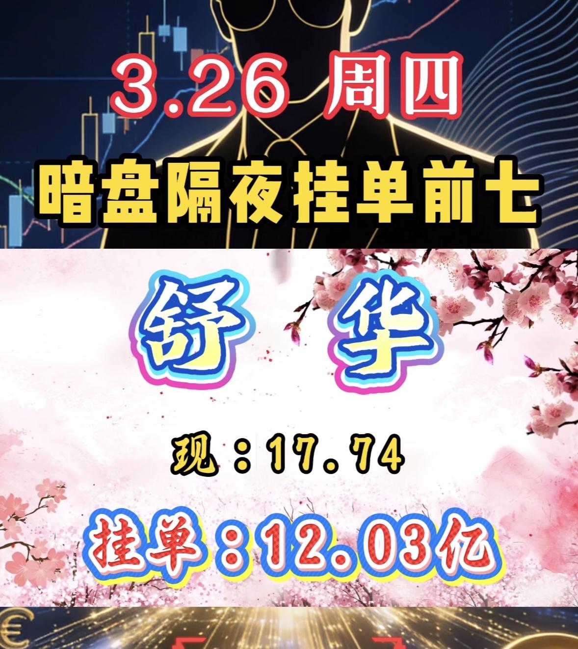 3月26日暗盘隔夜挂单排行榜出炉 暗盘隔夜挂单前七有舒华体育,现在股价17.74元,挂单金额达12.03亿,这阵仗可不小。从历史数据看,2月27日收盘价12.75元,还有一定涨幅。股吧里大家看法不一,有人觉得主力跑了去炒科技概念,还有人说它永远成不了宝藏。也有人觉得减持结束,又有赛事叠加,是黄金坑。不过股市风云变幻,这12.03亿的挂单会带来怎样的走势很难说。说不定能借着这波热度涨一波,也可能继续震荡,只能拭目以待了。