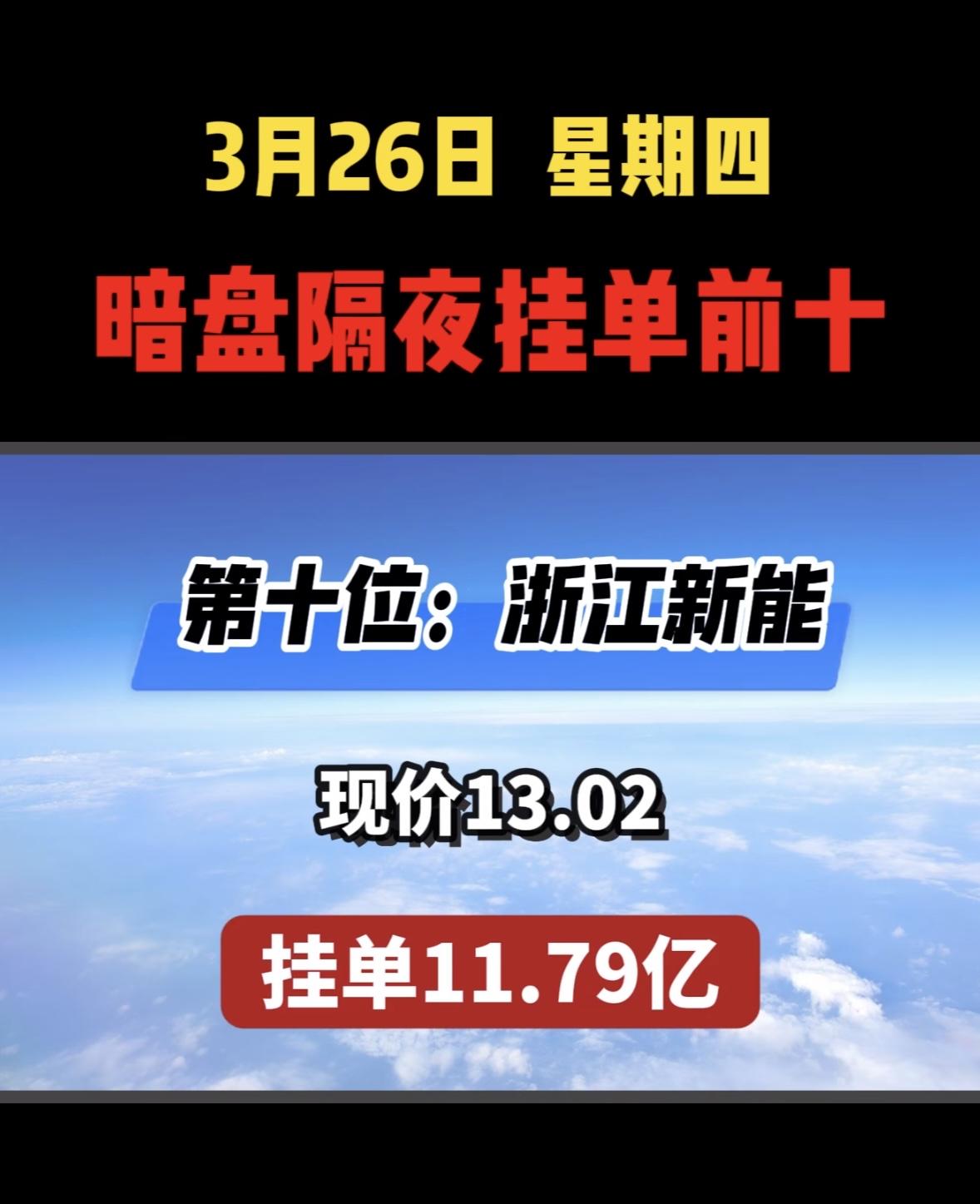 3月26日暗盘隔夜挂单排行榜个股揭晓 浙江新能挺引人注意,现价13.02元,挂单竟达11.79亿。从诊股信息看,它近期平均成本15.04元,股价在成本上方,处于多头行情且有加速上涨趋势。虽有重大利好消息,但资金呈流出状态,形势不太明朗。 该公司运营状况良好,盈利能力和成长能力都很强,位居行业前列,营运能力也较强。截止2022 - 03 - 31,有5家主力机构持仓。不过投资还得谨慎,毕竟资金流向不太乐观,后续走势有待观察。