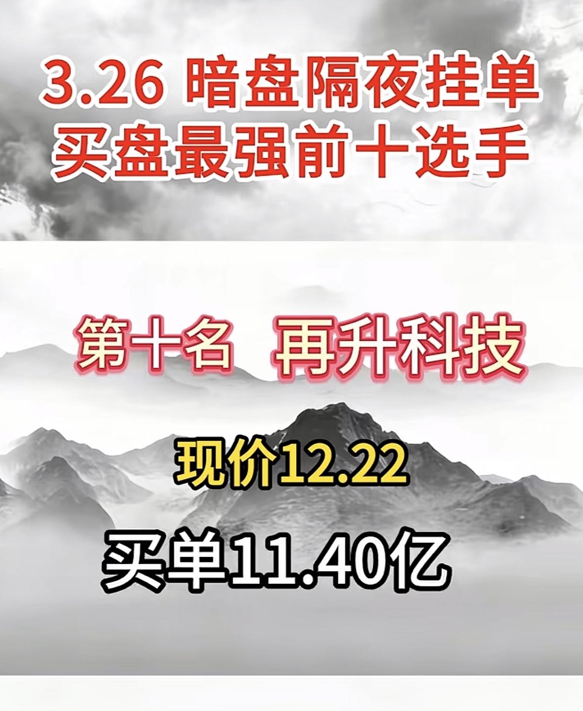 3月26日暗盘隔夜挂单排行榜揭晓 再升科技最近成了暗盘黑马,现价12.22元,买单达11.40亿,强势入榜。不过,它的股价从前期高点14.64元已累计下跌约37%,截至2026年1月21日收盘,股价为9.23元,下跌势头还没停。 综合各方面分析,其核心触底价位区间在7.5 - 8.5元,8元附近是强支撑区域。2022年,它实现营收16.18亿元,多个新产品有突破,还加强了应收账款管理。但股价走势变幻莫测,这匹黑马后续是触底反弹还是继续下行,值得持续关注。