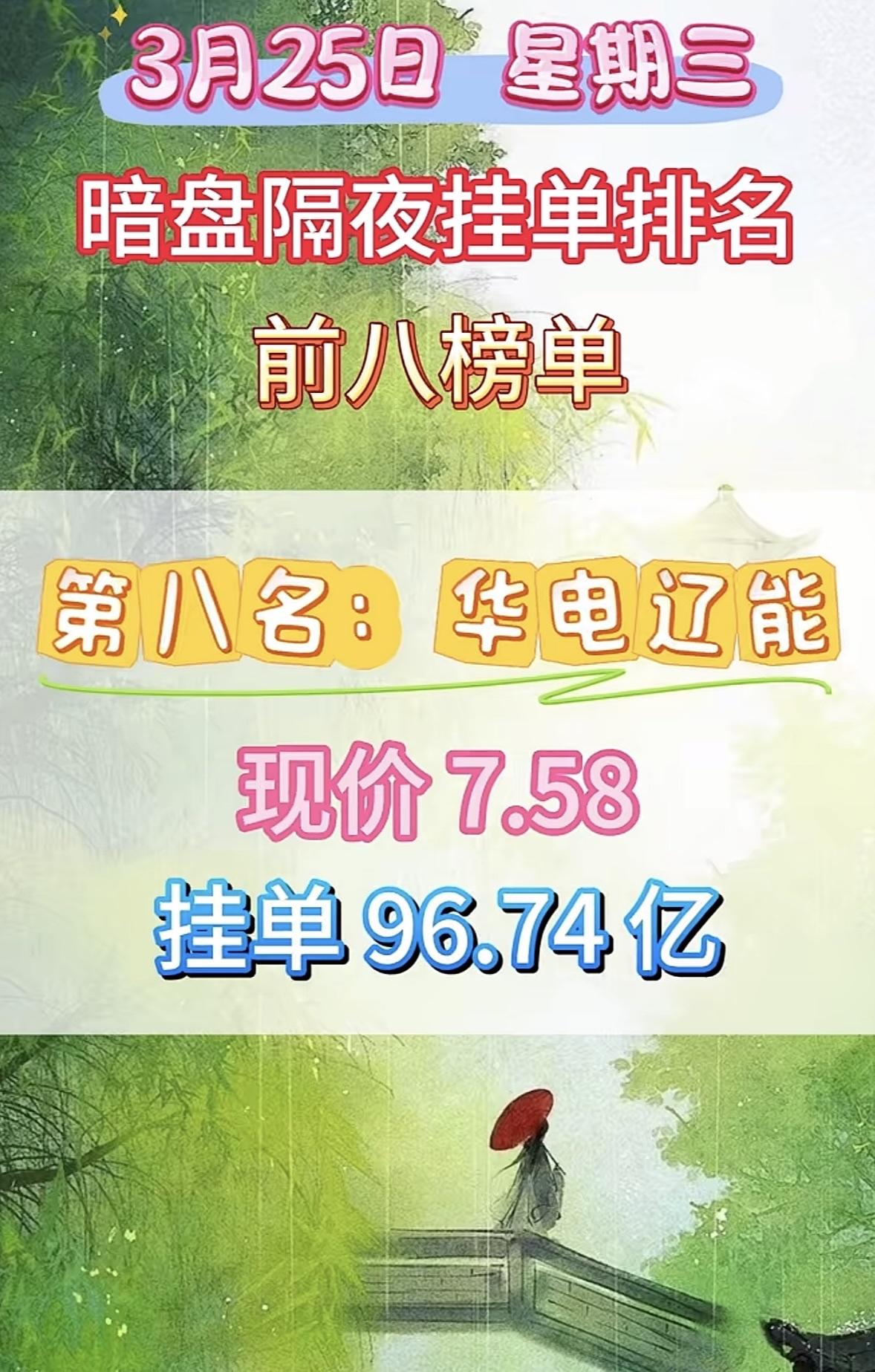 3月26日周四暗盘隔夜挂单排行榜出炉 3月25日的华电辽能有点意思。收盘报8.34元,涨了10.03%,还来了个8连板,绿电概念也跟着反复走强,带动了一批股票跟着涨。不过主力资金在这天净流出1268.83万元,占总成交额1.54%,游资倒是净流入1788.95万元。 从业绩来看,2025年三季报显示情况不算乐观,主营收入同比下降,归母净利润大幅下滑。不过第三季度单季度主营收入有上升,净利润虽还是负的但同比上升了。负债率68.62%,财务费用也不低。不知道之后华电辽能还会怎么发展,是继续强势还是会有新变化呢。