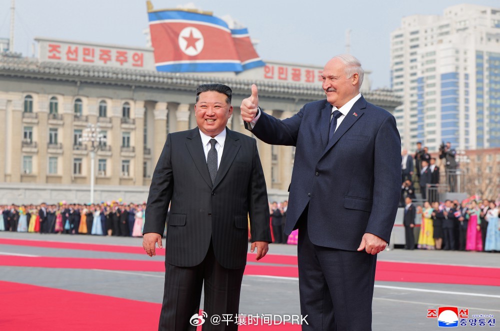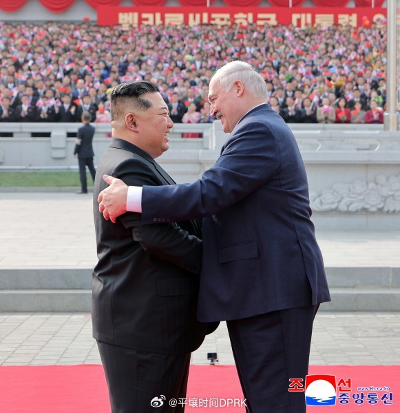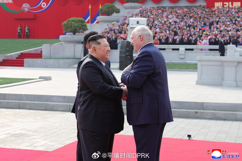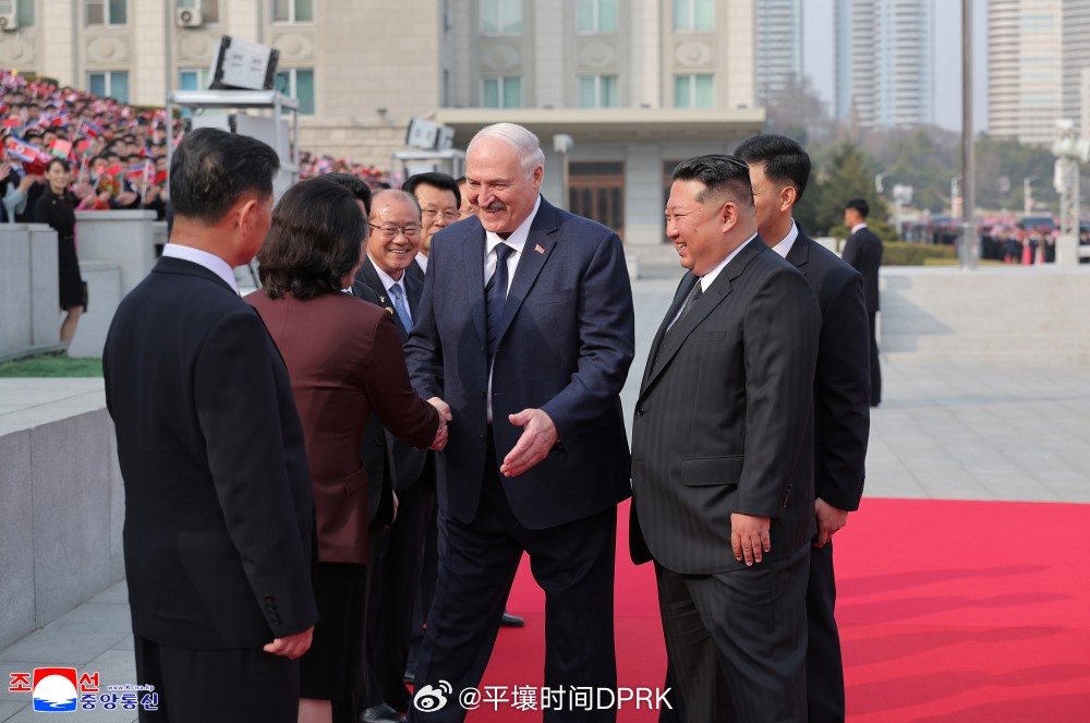 朝中社平壤3月26日电 应朝鲜民主主义人民共和国国务委员长金正恩同志邀请,白俄罗斯共和国总统卢卡申科同志对我国进行正式访问,欢迎仪式3月25日在金日成广场举行。