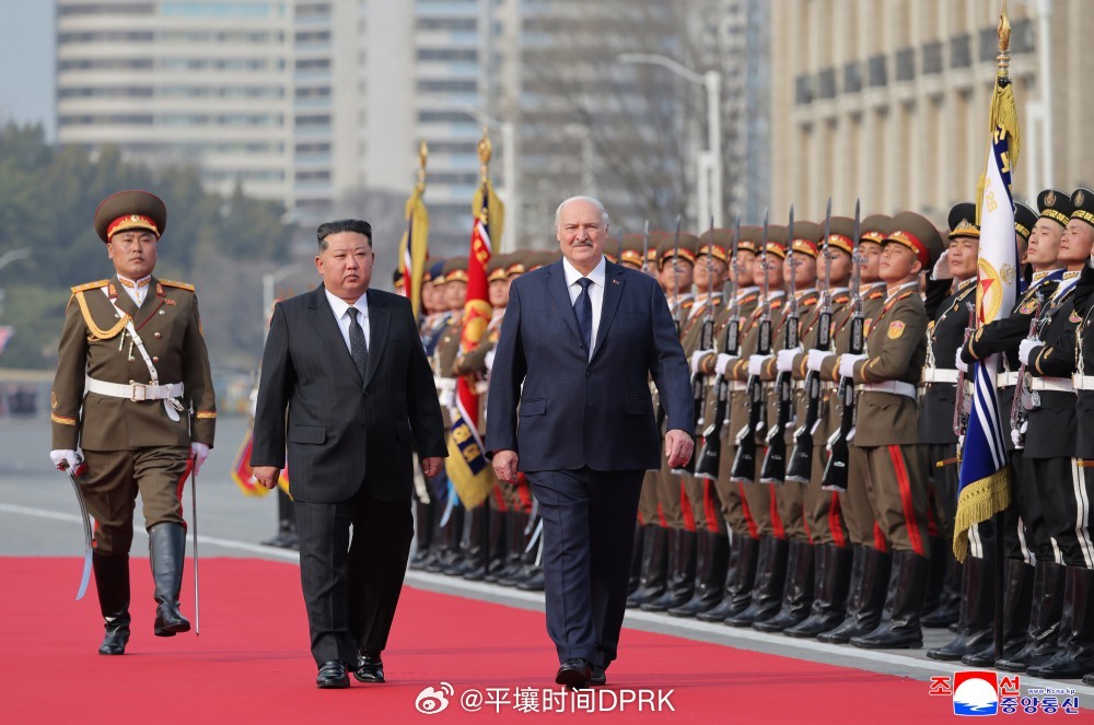 【白俄罗斯共和国总统卢卡申科同志欢迎仪式举行】朝中社平壤3月26日电 应朝鲜民主